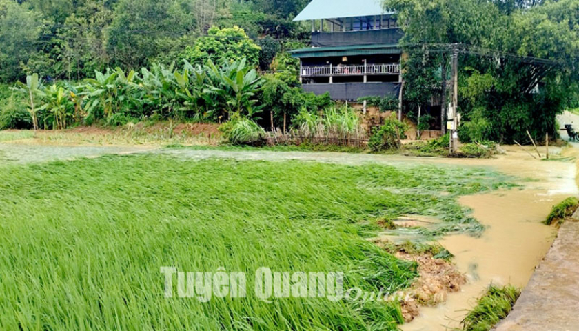 Mưa to gây ngập úng, đổ nhiều diện tích lúa tại xã Thành Long, huyện Hàm Yên, tỉnh Tuyên Quang. (Nguồn ảnh: baotuyenquang.com.vn)