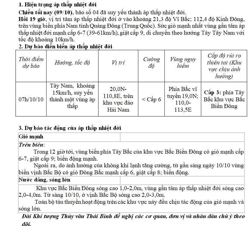 Tin áp thấp nhiệt đới (Suy yếu từ bão số 4)