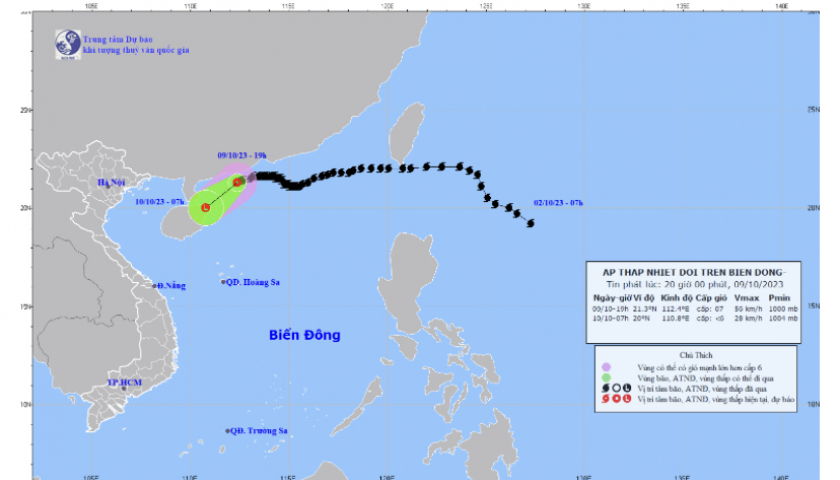 Vị trí và đường đi của áp thấp nhiệt đới.