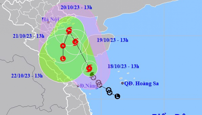 Hồi 13 giờ ngày 18/10, vị trí tâm bão ở vào khoảng 17,4 độ Vĩ Bắc; 109,1 độ Kinh Đông, trên vùng biển phía Nam đảo Hải Nam (Trung Quốc), cách đất liền khu vực Quảng Trị -Thừa Thiên Huế khoảng 200km về phía Đông Đông Bắc.