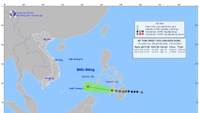 Do ảnh hưởng của áp thấp nhiệt đới, vùng biển phía đông nam Biển Đông từ đêm 19/12 có gió mạnh dần lên cấp 6, giật cấp 8; biển động, sóng biển cao từ 2-4m.