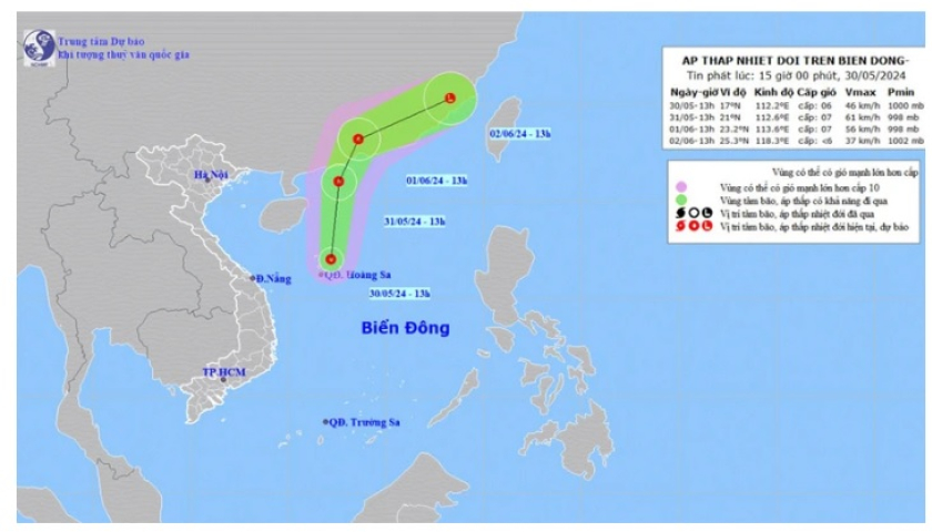 Đến 13 giờ ngày 31/5, vị trí tâm áp thấp nhiệt đới ở vào khoảng 21,0 độ vĩ bắc; 112,6 độ kinh đông, trên vùng biển tỉnh Quảng Đông (Trung Quốc). Sức gió mạnh nhất vùng gần tâm áp thấp nhiệt đới mạnh cấp 7, giật cấp 9; áp thấp nhiệt đới di chuyển theo hướng bắc với tốc độ 15km/giờ.