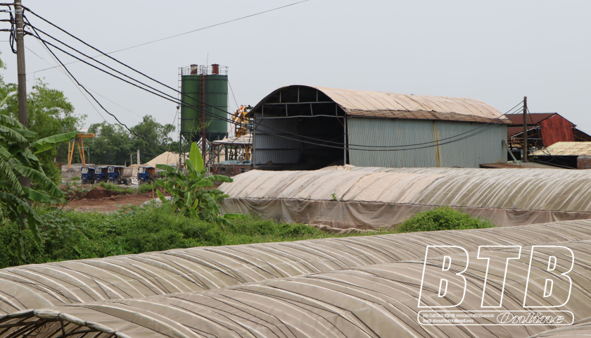 Khu vực trạm trộn bê tông và kho chứa đồ của hộ ông Phạm Văn Tiếp, xã Quốc Tuấn (Kiến Xương).