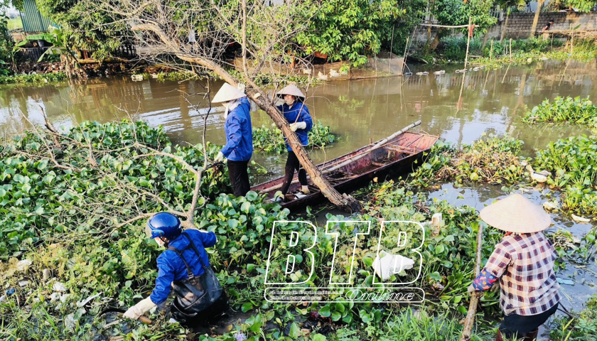 Xí nghiệp Khai thác công trình thủy lợi huyện Hưng Hà huy động nhân viên giải phóng dòng chảy.