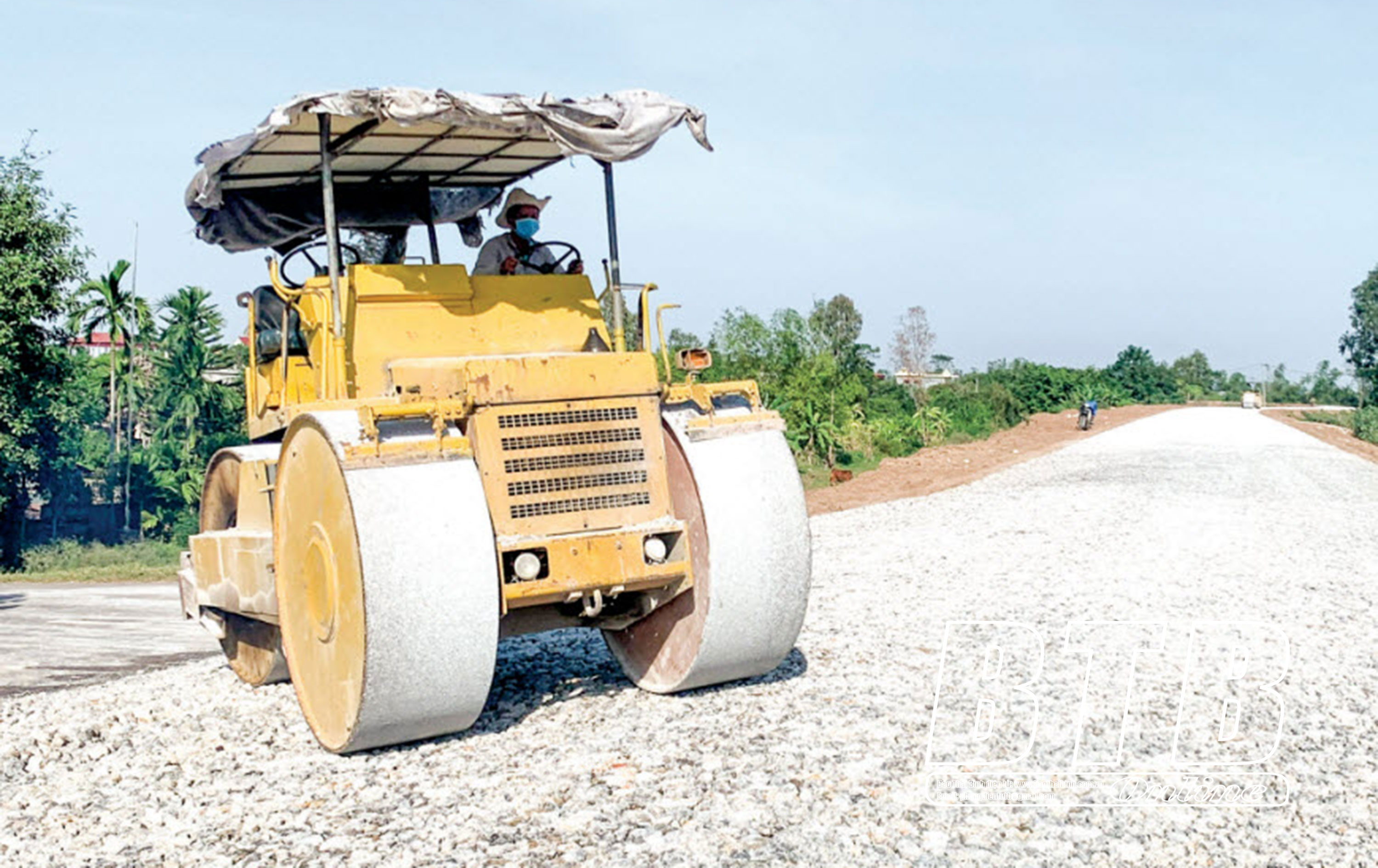 Thi công lu nèn, cấp phối đá dăm đê tả Trà Lý đoạn từ K2+900 đến K6+600.