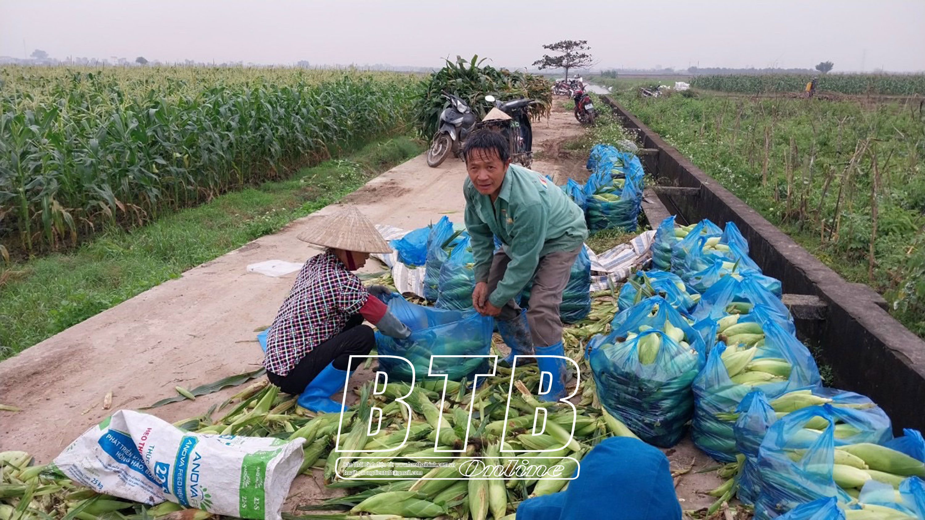 Nông dân Hưng Hà tập trung thu hoạch ngô trước cơn bão số 3.