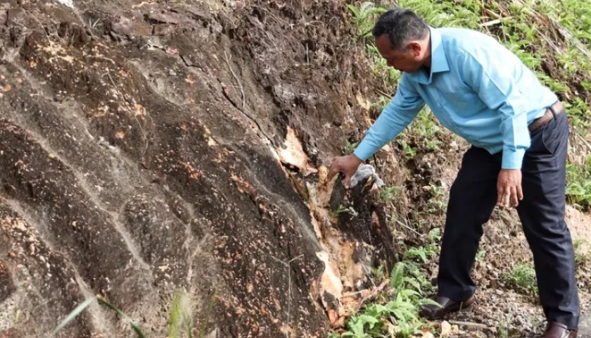 Điểm sạt lở tại km43+300 trên đèo Khánh Lê. (Ảnh: PLO)