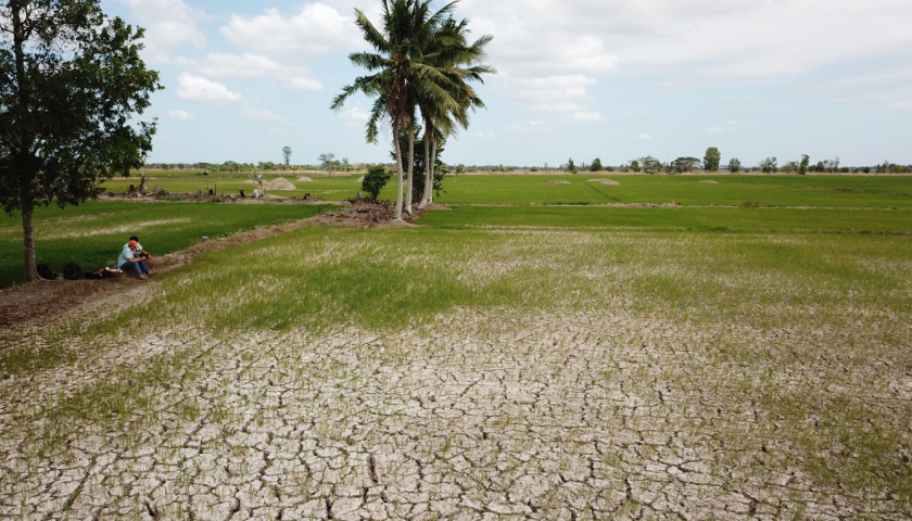 Hàng ngàn ha lúa ở Sóc Trăng bị chết khô vì không còn nước ngọt tưới.