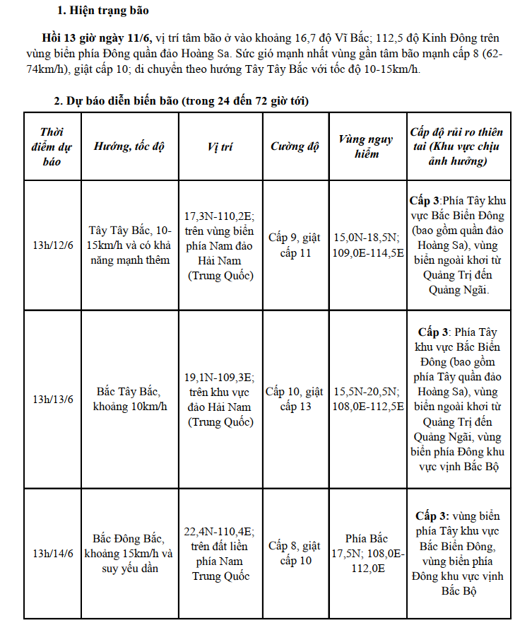 Tin bão trên biển Đông (Cơn bão số 1)