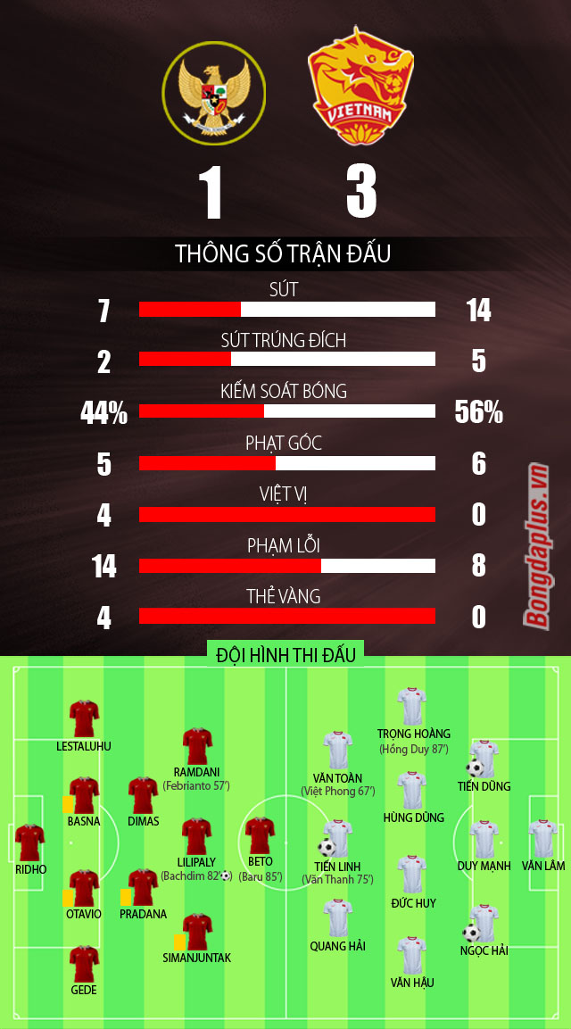 Dẫu sao, chiến thắng 3-1 trước Indonesia cũng tiếp tục cho thấy vị thế số 1 của Việt Nam tại Đông Nam Á. Không chỉ tiếp tục bất bại ở khu vực, Việt Nam dưới thời HLV Park Hang Seo cũng đã phá đi cái dớp kỵ giơ trước Indonesia.
