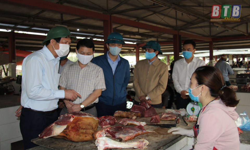 Đồng chí Nguyễn Hồng Chuyên, Ủy viên Ban Thường vụ, Trưởng ban Tuyên giáo Tỉnh ủy cùng lãnh đạo huyện Vũ Thư kiểm tra tại chợ Thông, xã Hòa Bình.