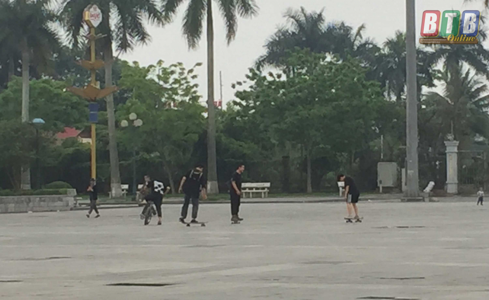 Tại Quảng Trường 14/10, chiều 7/4, nhiều nhóm trẻ đến vui chơi nhưng không đeo khẩu trang phòng chống dịch.