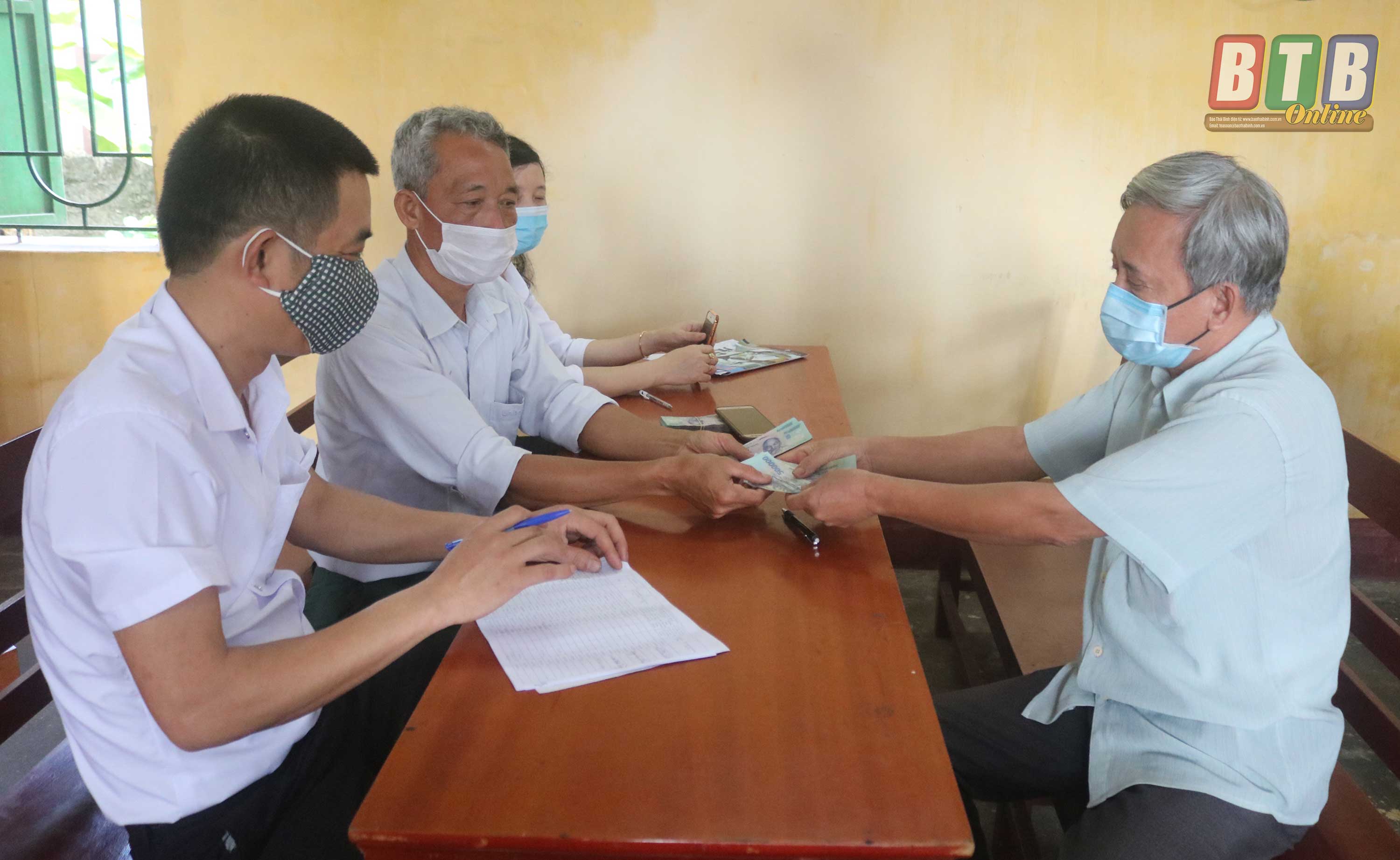Người có công xã Quỳnh Lâm (Quỳnh Phụ) nhận tiền hỗ trợ theo Nghị quyết 42 của Chính phủ.