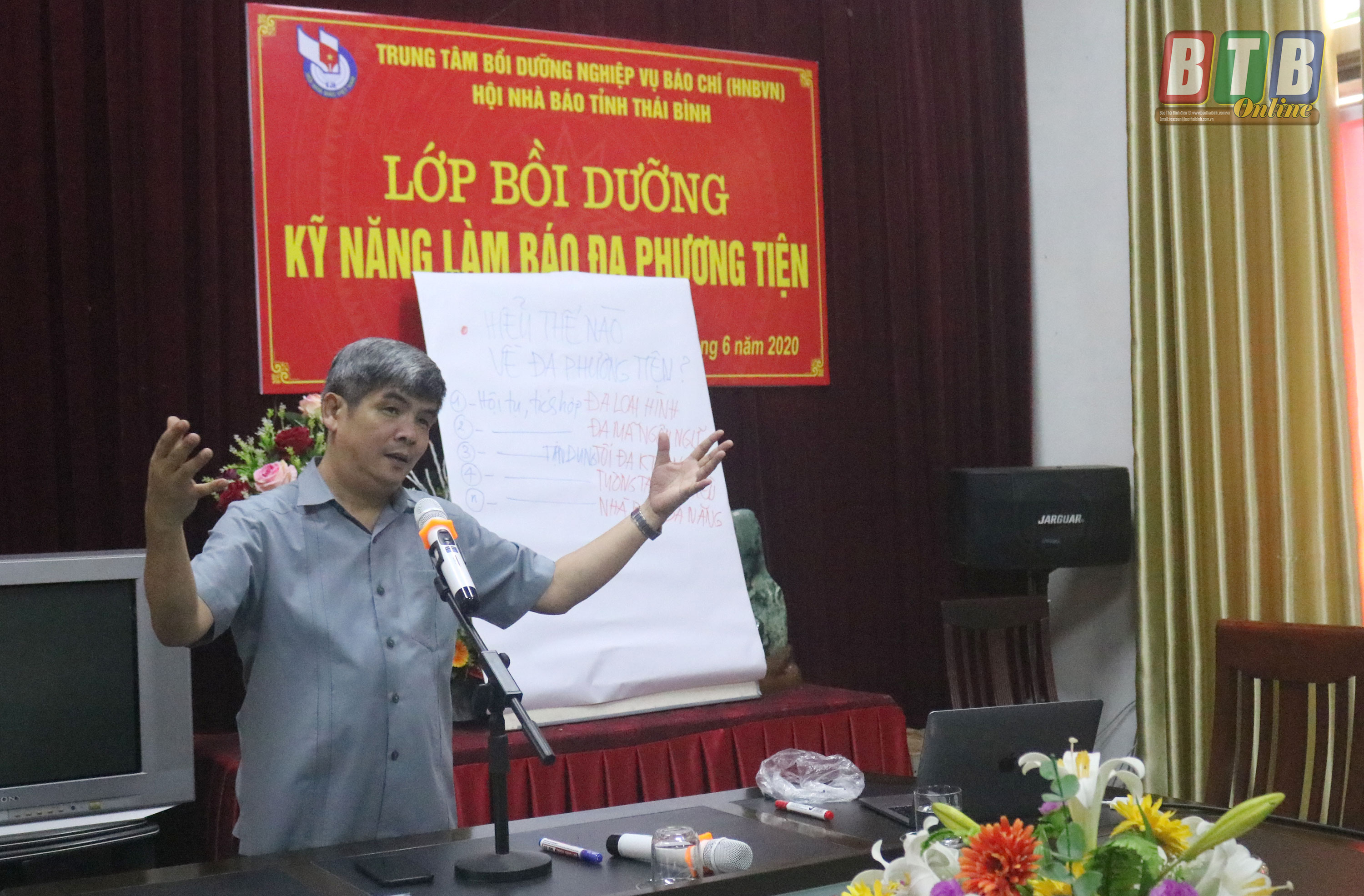 PGS.TS Hà Huy Phượng truyền đạt các kiến thức làm báo đa phương tiện cho các học viên.