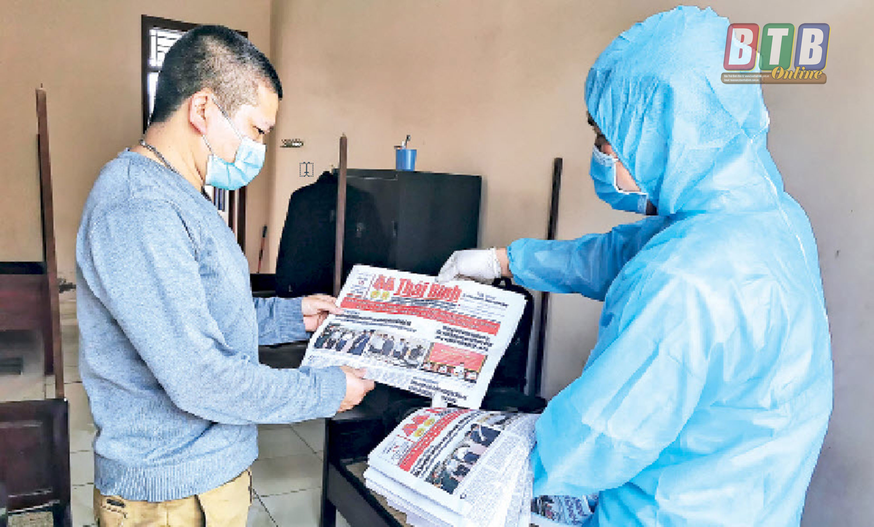 Báo Thái Bình đến với bạn đọc tại khu cách ly tập trung. Ảnh: Hà Dung