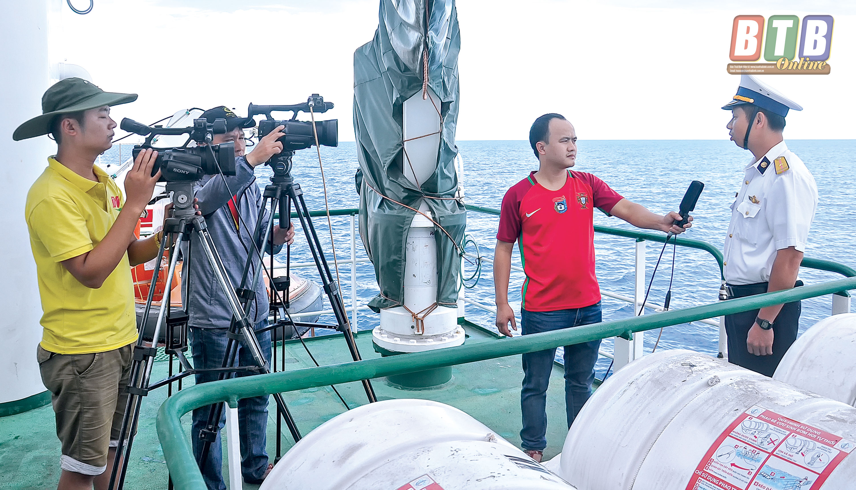 Phóng viên Báo Thái Bình tác nghiệp tại Trường Sa.