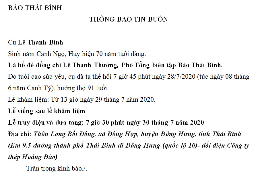 Thông báo tin buồn