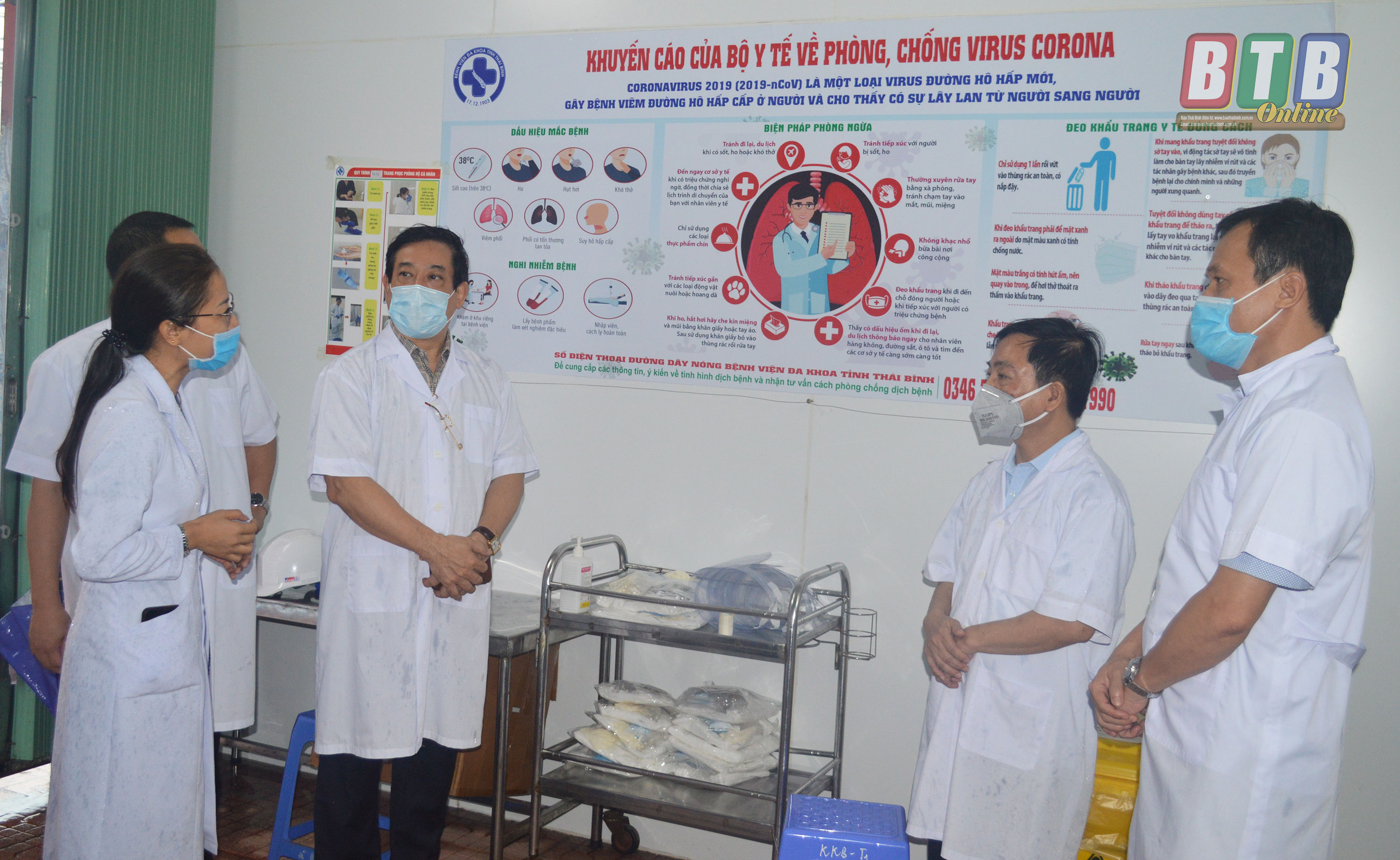 Phát biểu tại buổi làm việc, PGS.TS. Lương Ngọc Khuê, Cục trưởng Cục quản lý khám chữa bệnh, Bộ Y tế đề nghị ngành Y tế Thái Bình nói chung và Bệnh viện Đa khoa tỉnh Thái Bình nói riêng tuyệt đối không chủ quan bởi hiện nay, bệnh nhân 566 không sốt, ho, khó thở nhưng bệnh nhân có độ tuổi cao, bệnh lý nền là tiểu đường. Đối với bệnh nhân này, Bệnh viện cần theo dõi sát sao, đồng thời lấy mẫu lần 2 để xét nghiệm, chụp phổi để xem xét tổn thương và có hướng điều trị kịp thời. Cục trưởng Cục quản lý khám chữa bệnh yêu cầu Bệnh viện Đa khoa tỉnh Thái Bình phải làm tốt công tác vệ sinh bệnh viện, giữ phòng bệnh thông thoáng, sạch sẽ; đội ngũ nhân viên y tế tuyệt đối thực hiện đúng các biện pháp phòng, chống dịch, không để dịch lây lan ra bên ngoài.