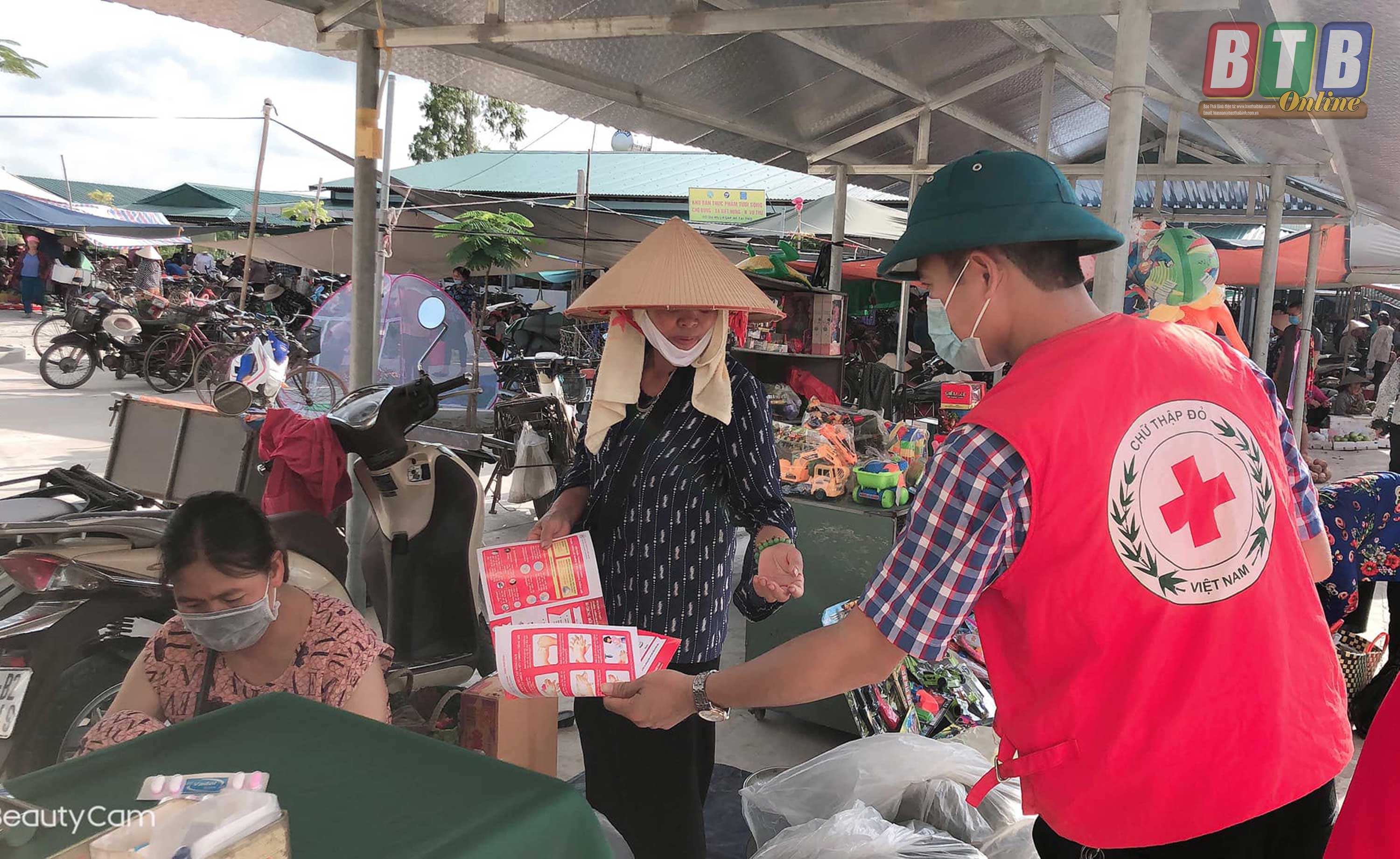 Cán bộ, hội viên, tình nguyện viên chữ thập đỏ huyện Vũ Thư đã trực tiếp phát tờ rơi và 1.000 khẩu trang miễn phí cho tiểu thương và nhân dân đến chợ Búng. Toàn bộ kinh phí mua khẩu trang do Hội Chữ thập đỏ huyện vận động các tổ chức, cá nhân tài trợ.