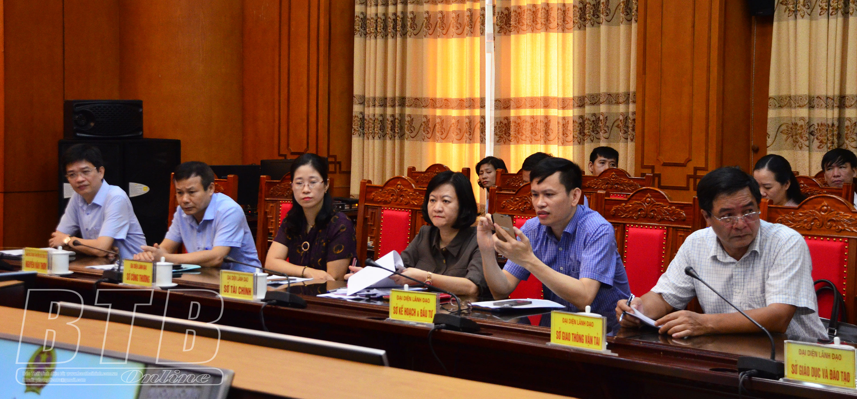 Đại diện các sở, ngành dự hội nghị tại điểm cầu Thái Bình.