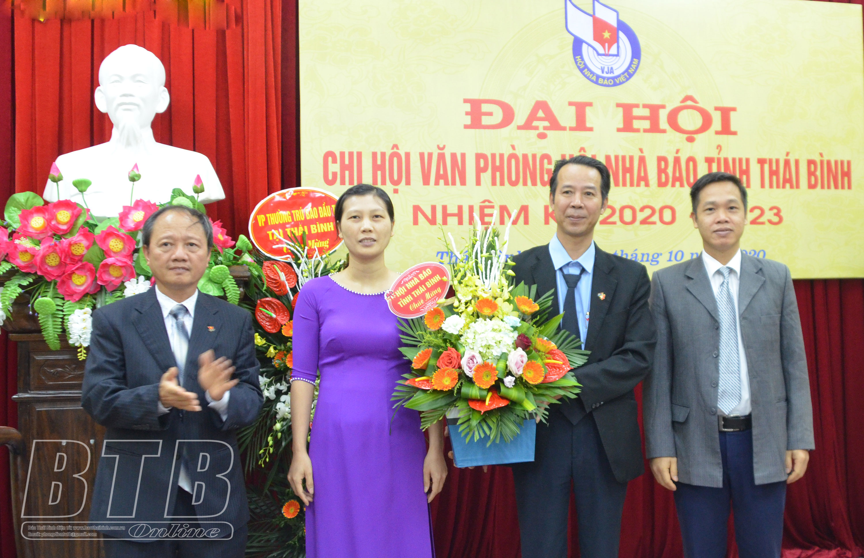 Đồng chí Vũ Anh Thao, Chủ tịch Hội Nhà báo tỉnh tặng hoa chúc mừng Ban Thư ký Chi hội Văn phòng Hội Nhà báo tỉnh, nhiệm kỳ 2020-2023.