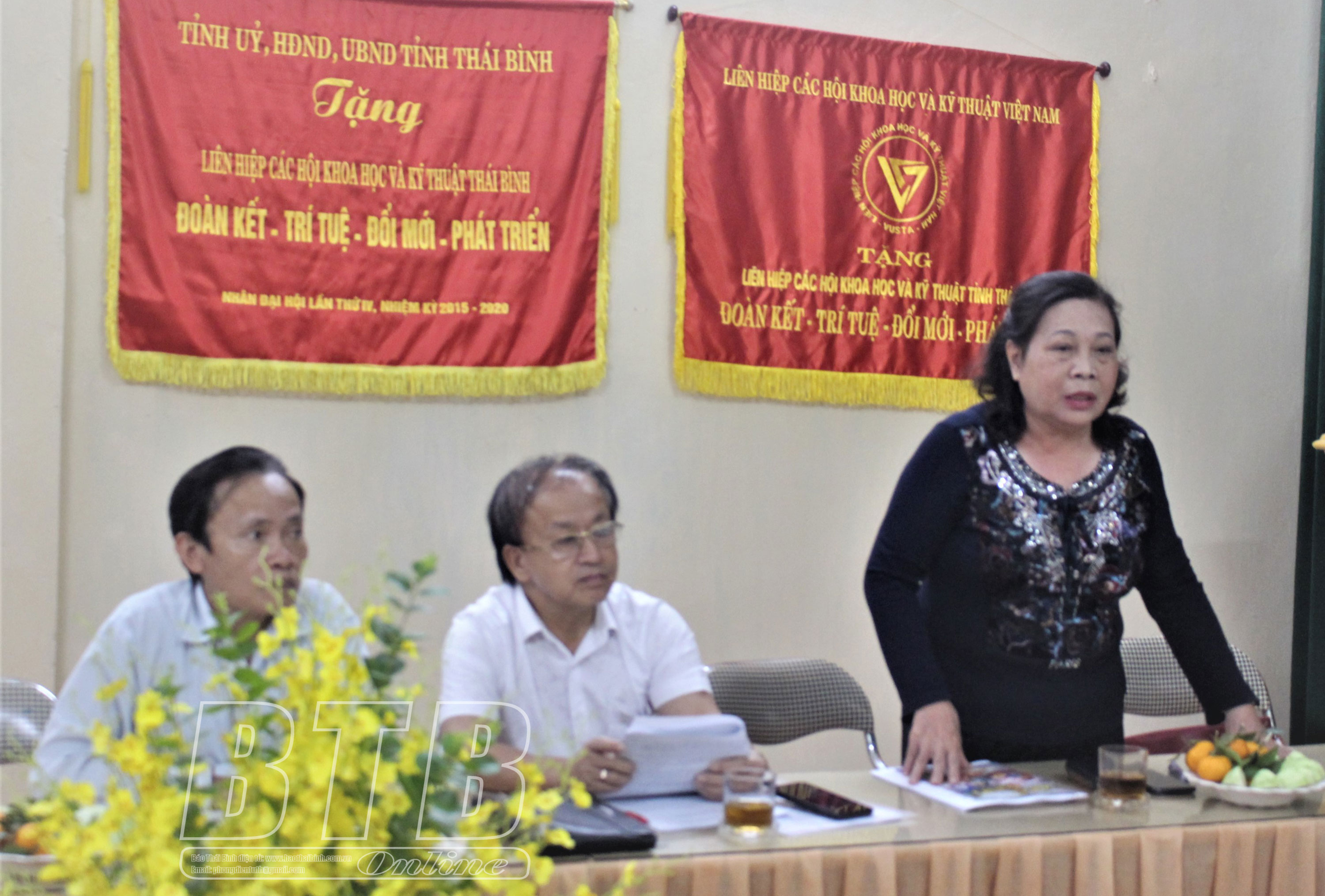 Đại diện Liên hiệp các Hội Khoa học và Kỹ thuật tỉnh báo cáo dự thảo đề án giải thưởng Lê Quý Đôn tỉnh.