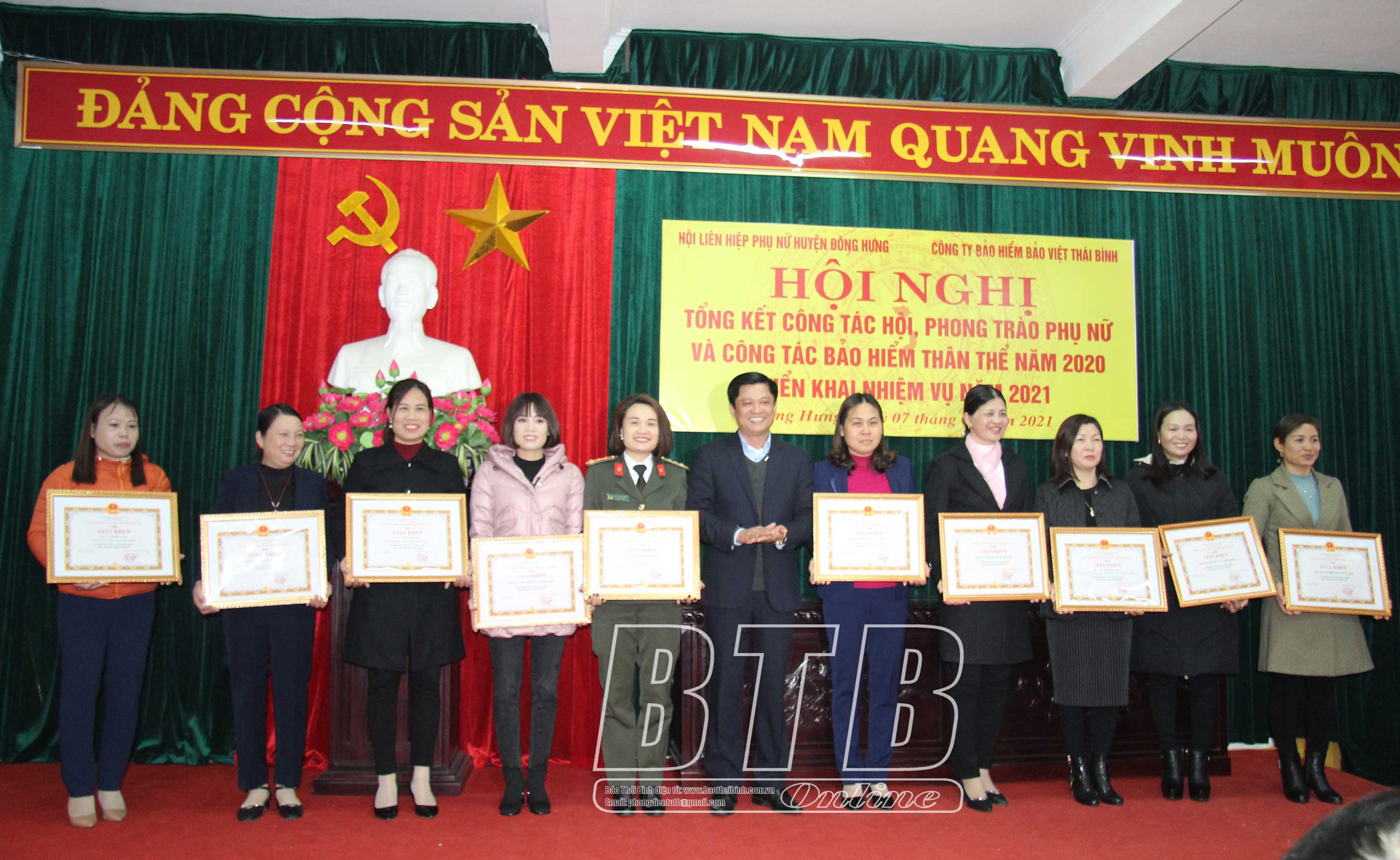 Tại hội nghị, Hội LHPN huyện đã trao giấy khen của các cấp hội, của UBND huyện cho các tập thể, cá nhân có thành tích xuất sắc trong công tác hội, phong trào phụ nữ năm 2020; 38 cơ sở hội làm tốt công tác bảo hiểm được Bảo hiểm xã hội tỉnh khen thưởng.