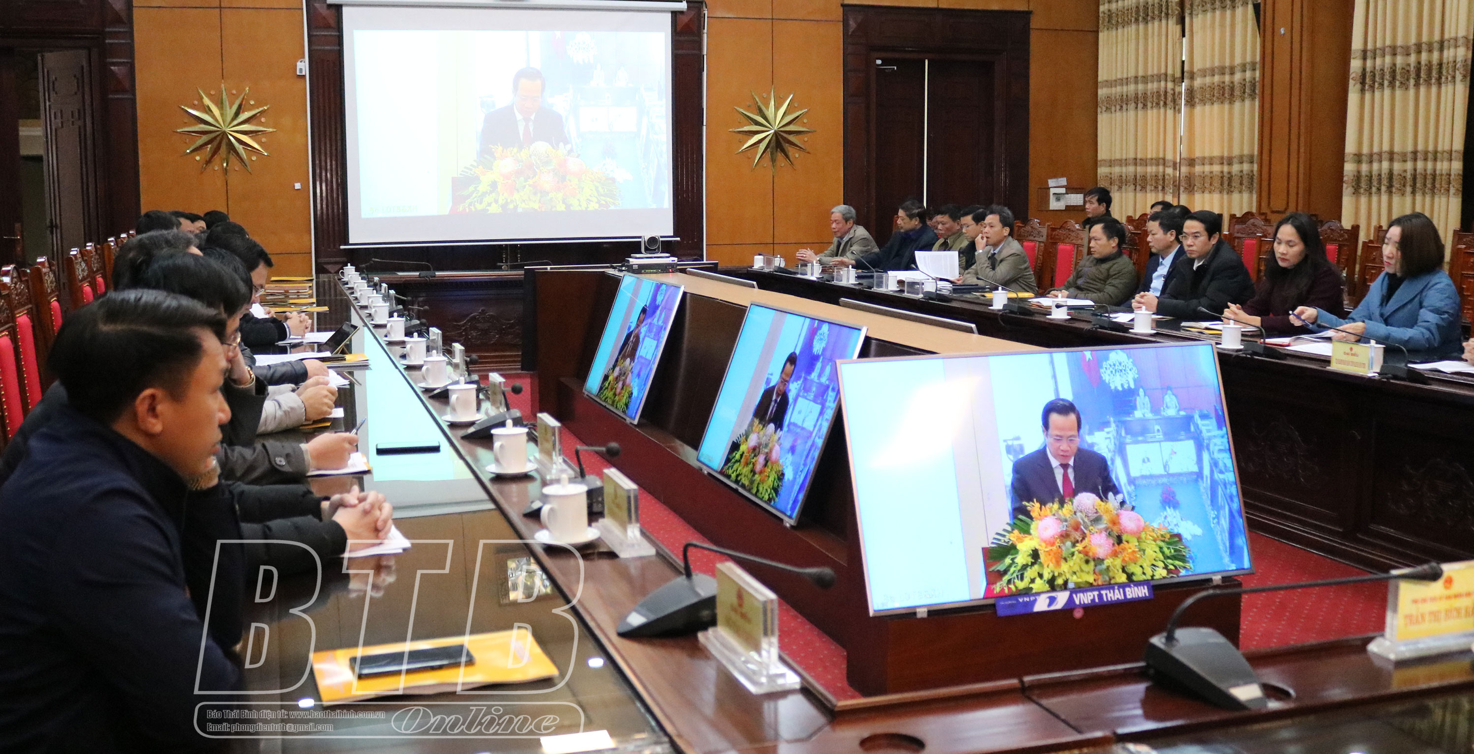 Đại biểu dự hội nghị trực tuyến tại điểm cầu tỉnh Thái Bình.