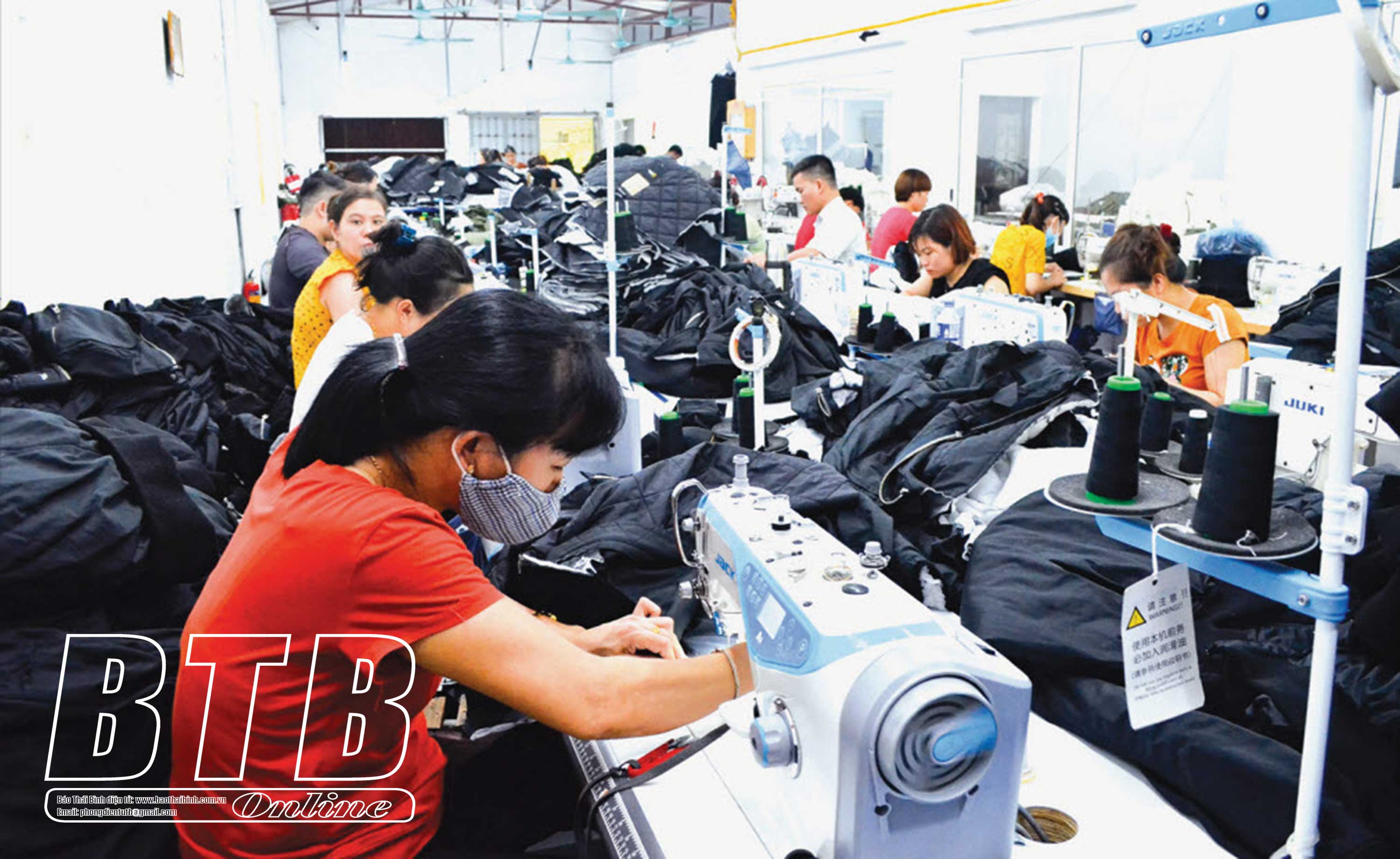 Đưa nghề may về nông thôn, giúp việc làm, giảm tỷ lệ hộ nghèo cho người dân. Trong ảnh: Cơ sở May xã Vũ Lạc (thành phố Thái Bình) tạo việc làm cho lao động địa phương.