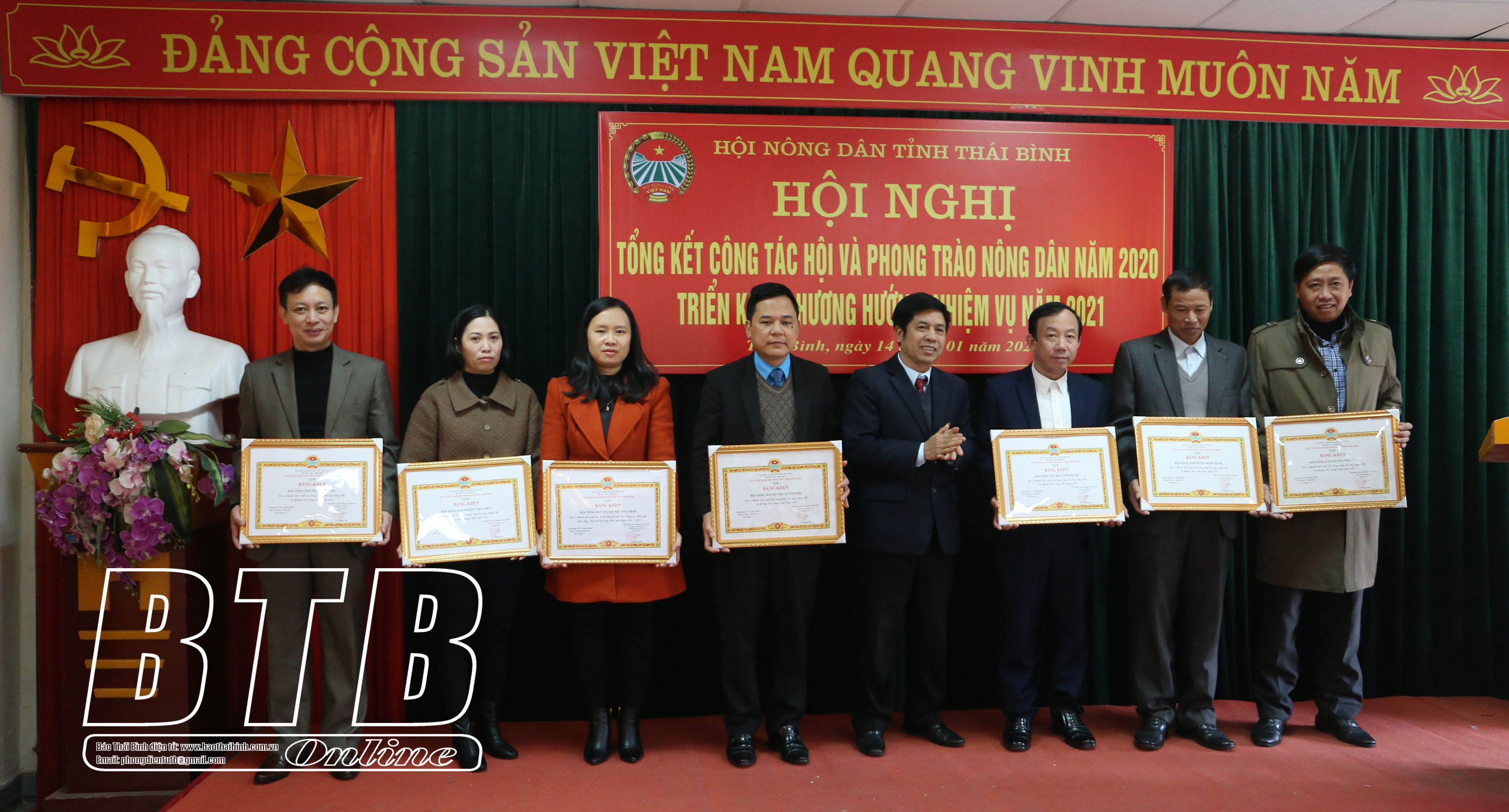 Tại hội nghị, lãnh đạo Hội Nông dân tỉnh đã trao bằng khen của Trung ương Hội Nông dân Việt Nam và Hội Nông dân tỉnh cho 42 tập thể, cá nhân có thành tích xuất sắc trong năm 2020.
