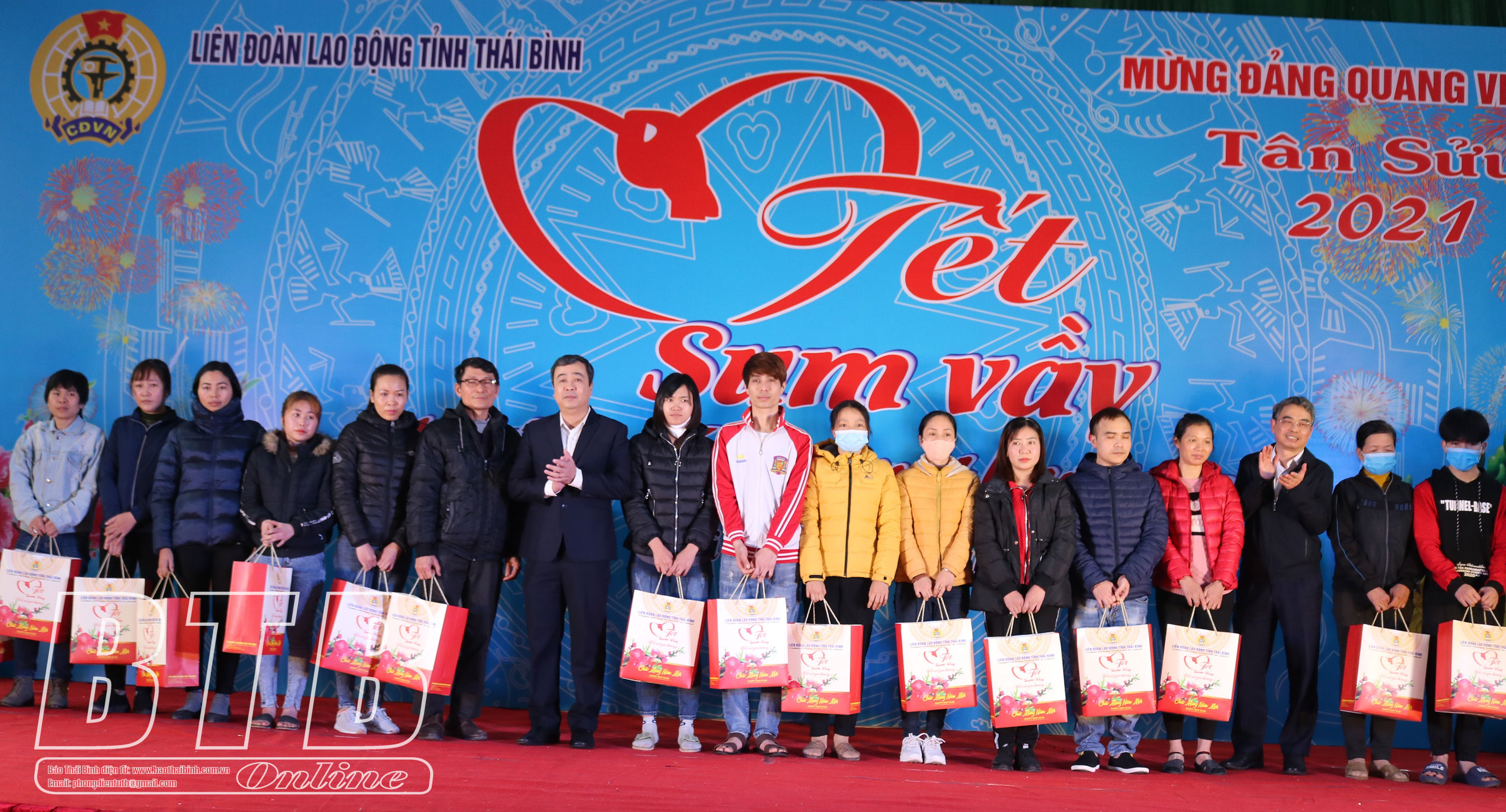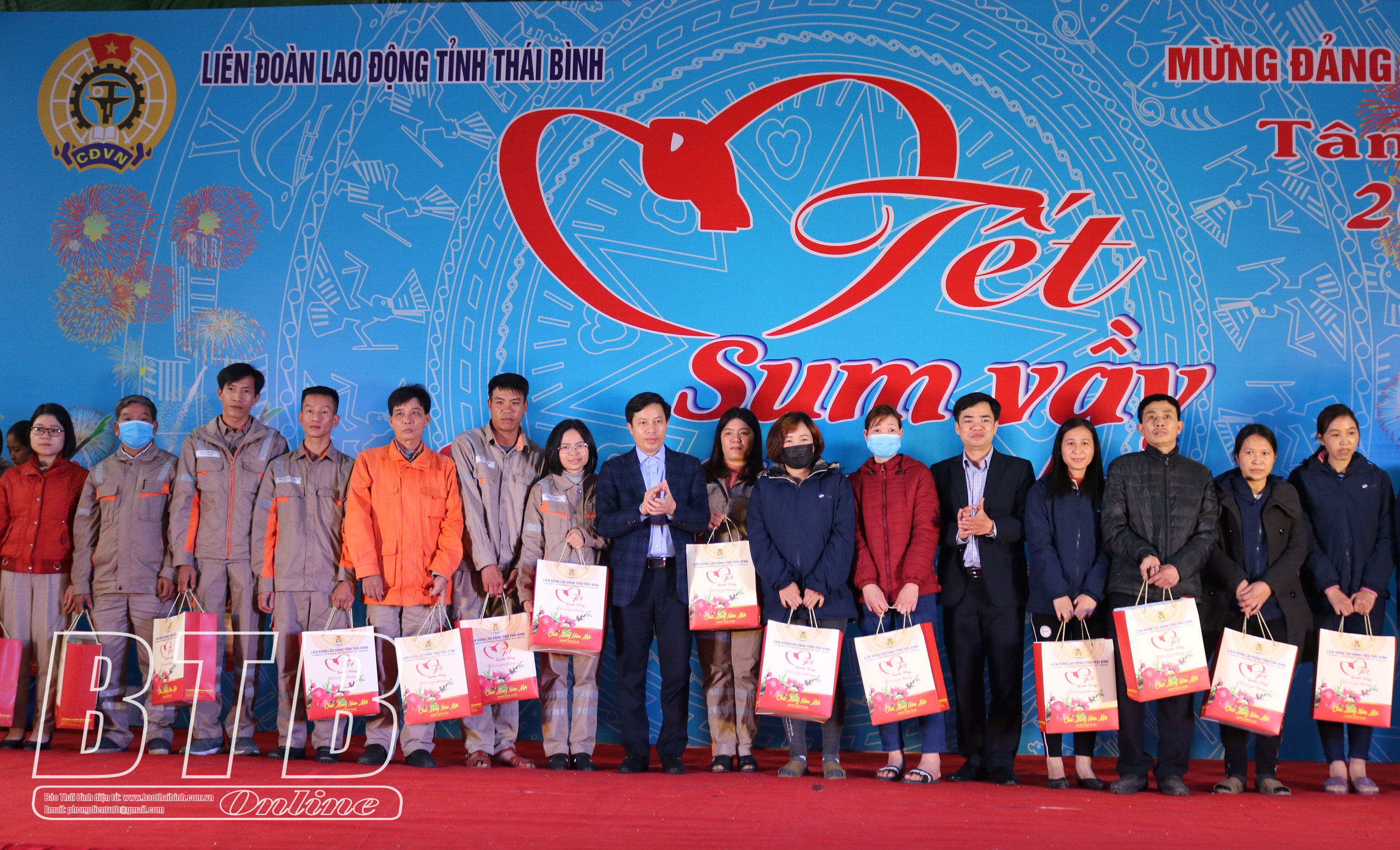 Với chủ đề “Tết sum vầy - Kết nối yêu thương”, tại chương trình, đồng chí Ngô Đông Hải, Ủy viên dự khuyết Ban Chấp hành Trung ương, Bí thư Tỉnh ủy cùng các đồng chí lãnh đạo tỉnh; lãnh đạo các sở, ban, ngành đã trao 300 suất quà, mỗi suất trị giá 700 nghìn đồng (gồm 500 nghìn đồng tiền mặt và 200 nghìn đồng tiền quà) cho công nhân lao động có hoàn cảnh khó khăn; Công ty Cổ phần Tập đoàn Thaibinhseed trao 30 suất quà (mỗi suất gồm 300 nghìn đồng tiền mặt và 5 kg gạo) với mong muốn người lao động được đón tết vui vẻ, đầm ấm.