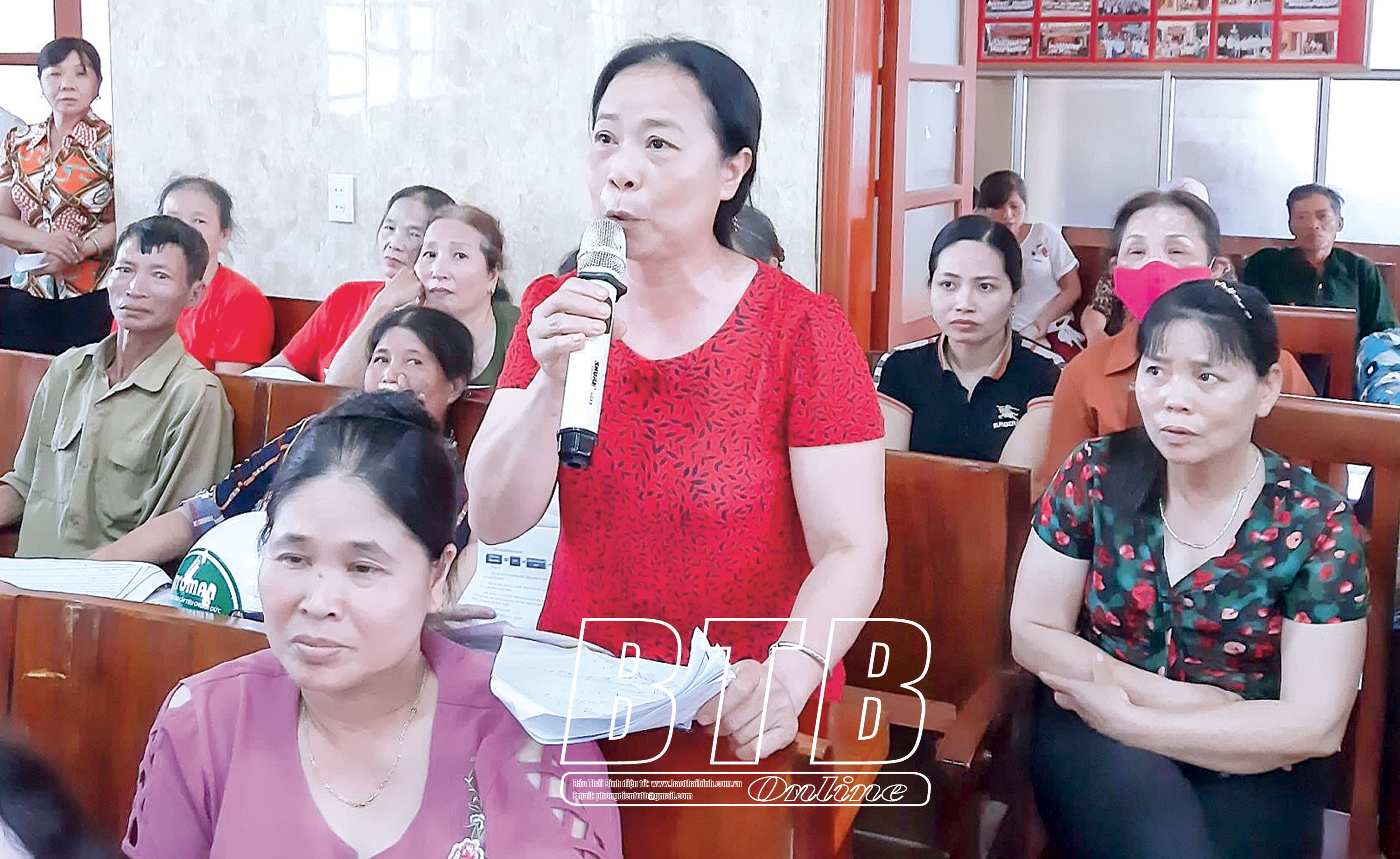 Người dân Hưng Hà tham gia đối thoại chính sách BHXH, BHYT.