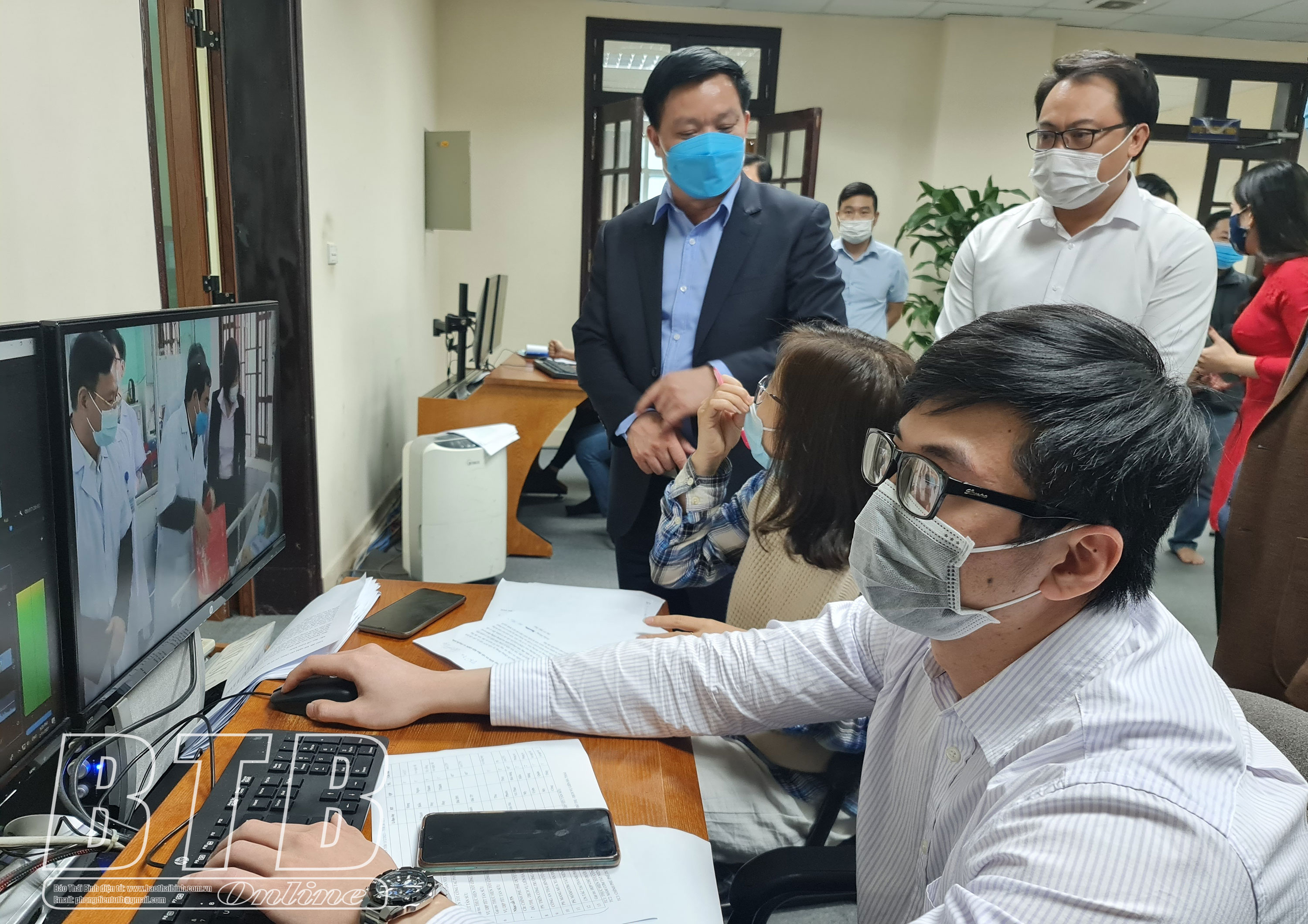 Đồng chí Nguyễn Khắc Thận, Phó Bí thư Tỉnh ủy, Chủ tịch UBND tỉnh thăm, động viên và chúc tết các phóng viên, kỹ thuật viên của Đài Phát thanh - Truyền hình tỉnh đang trực sản xuất chương trình tết.
