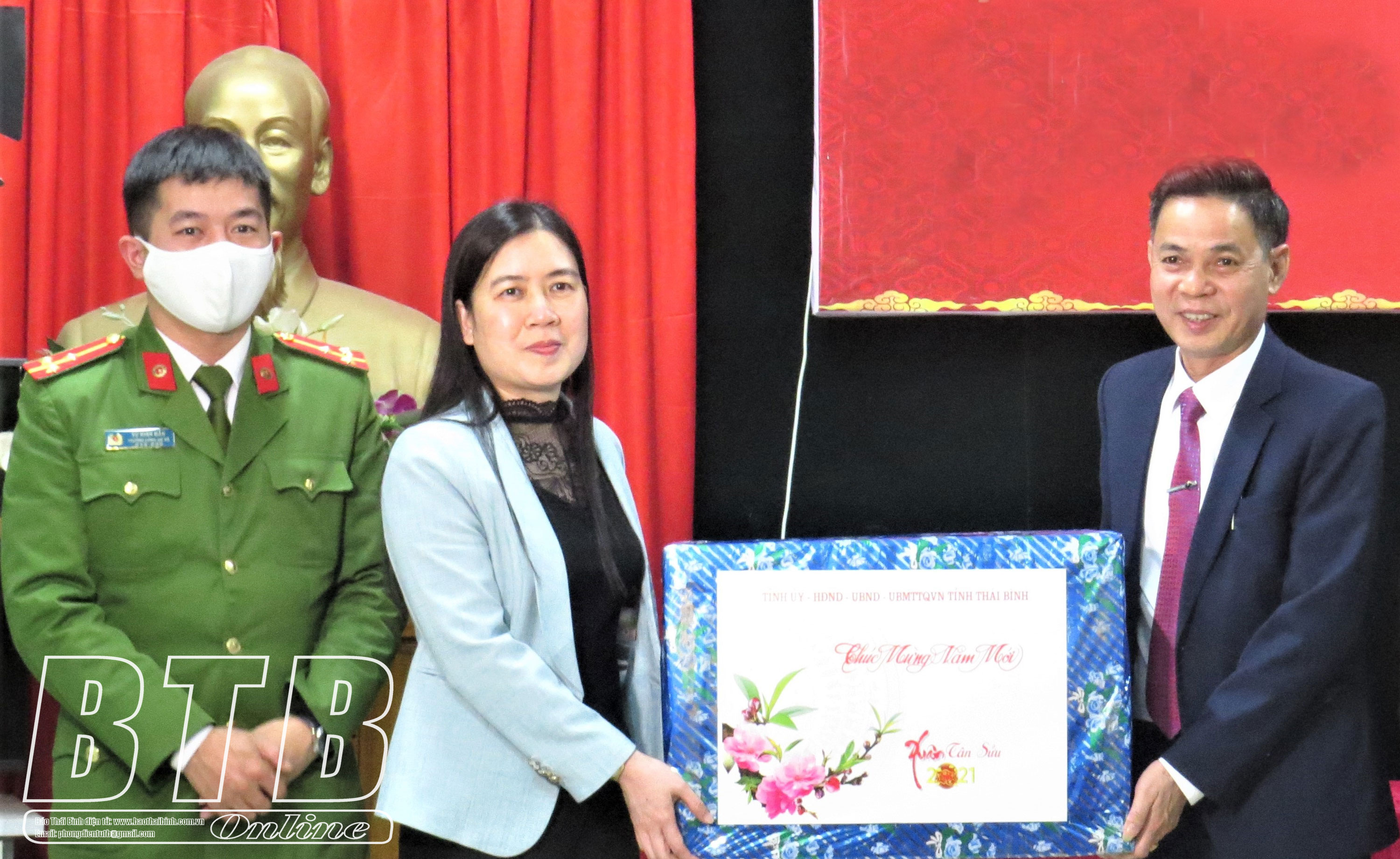 Tại các nơi đến kiểm tra, đồng chí Trưởng ban Tổ chức Tỉnh ủy đã động viên, chúc tết cán bộ, nhân dân các địa phương, đồng thời yêu cầu lực lượng Công an các xã, thị trấn của huyện Tiền Hải cần chủ động nắm chặt tình hình, triển khai đồng bộ các biện pháp nghiệp vụ, thường xuyên tuần tra, khép kín địa bàn, đặc biệt có phương án bảo đảm tốt ANTT cho nhân dân vui xuân, đón năm mới Tân Sửu an toàn lành mạnh. Đồng thời các đơn vị, địa phương đẩy mạnh tuyên truyền để duy trì thực hiện nghiêm các biện pháp phòng, chống dịch, tuyệt đối không chủ quan, lơ là, thực hiện tốt việc khai báo y tế khi người thân về quê ăn tết, và thực hiện nghiêm túc việc đeo khẩu trang khi ra khỏi nhà và không tụ tập đông người tại nơi công cộng.