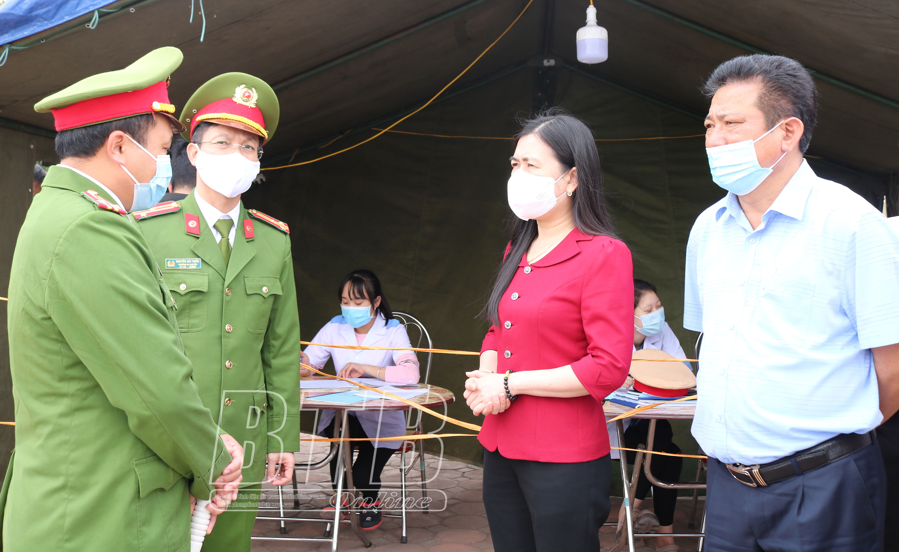 Cũng trong sáng ngày 24/2, đồng chí Trần Thị Bích Hằng, Tỉnh ủy viên, Phó Chủ tịch UBND tỉnh đi kiểm tra công tác phòng, chống dịch Covid-19 tại Trường THCS Hồng An, đền Tiên La và chốt kiểm dịch cầu Thái Hà (huyện Hưng Hà).