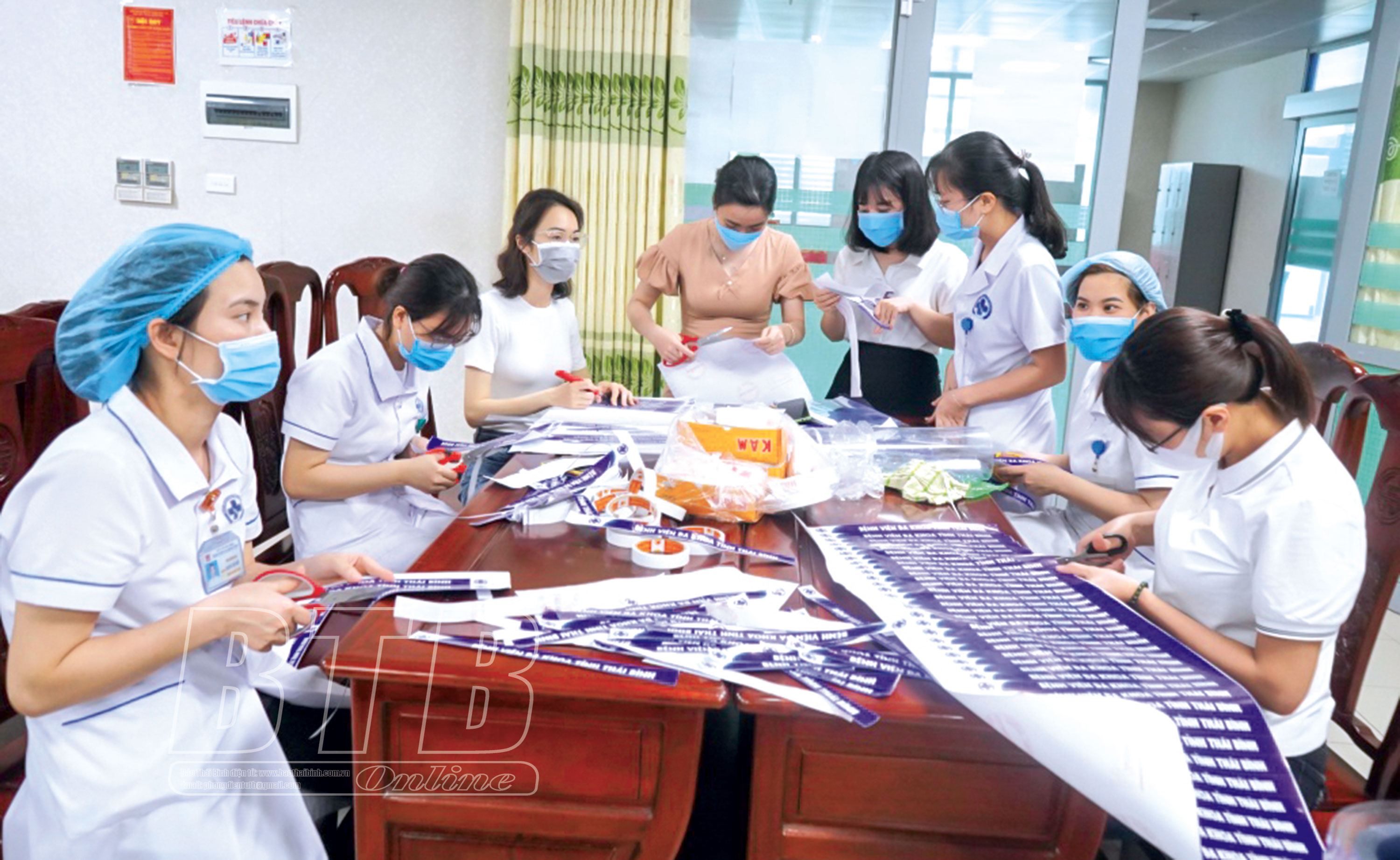 Khối lượng công việc nhiều, vất vả là vậy song tranh thủ giờ nghỉ trưa ít ỏi, ĐVTN nhiều đơn vị y tế còn tham gia làm kính chắn giọt bắn tặng các đồng nghiệp trong thời điểm việc mua trang thiết bị phòng, chống dịch khó khăn; tích cực tuyên truyền, hướng dẫn cách phòng, chống dịch. Cụ thể, ĐVTN Trung tâm Kiểm soát bệnh tật tỉnh đã huy động các nguồn tài trợ làm 800 kính chắn giọt bắn, mua 2.500 khẩu trang y tế cấp phát đến các chốt phòng, chống dịch, khu cách ly, phối hợp sản xuất video clip làm tư liệu tuyên truyền phòng, chống dịch; ĐVTN Bệnh viện Đa khoa tỉnh tham gia phát khẩu trang miễn phí cho người bệnh, làm 2.000 kính chắn giọt bắn cung cấp cho nhân viên y tế và người bệnh...