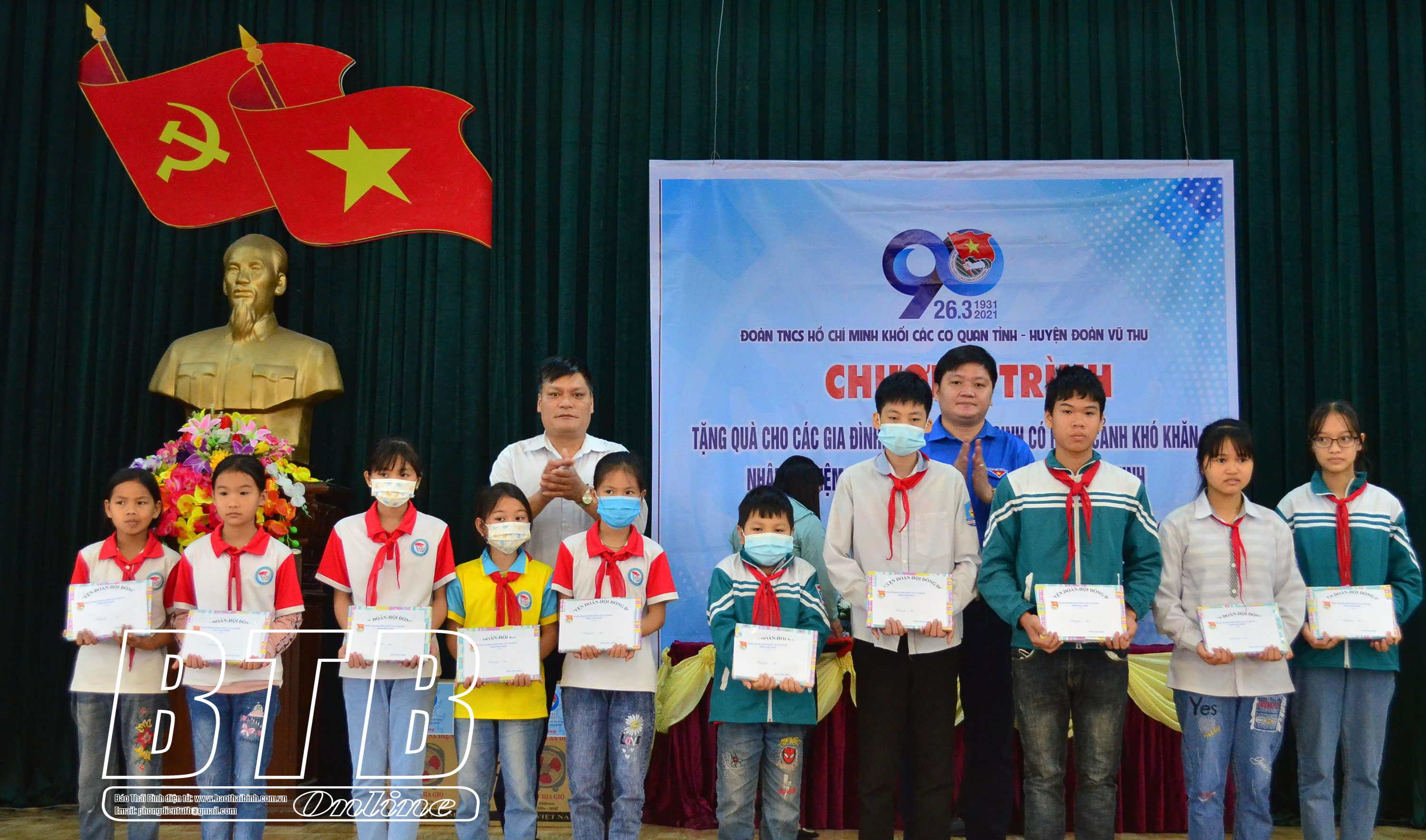Tặng quà cho các em học sinh có hoàn cảnh khó khăn tại xã Đồng Thanh, huyện Vũ Thư.