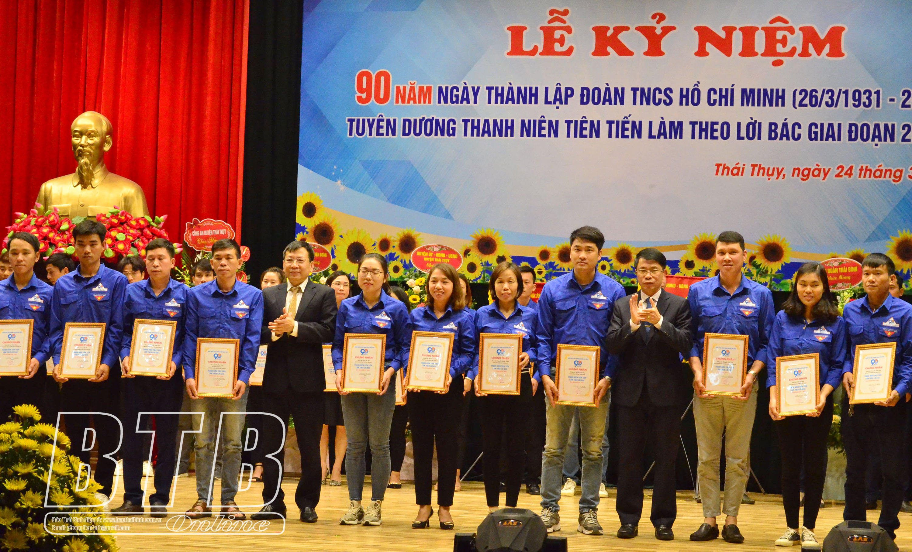 Nhân dịp này, Huyện đoàn Thái Thụy tuyên dương 56 thanh niên tiến làm theo lời Bác giai đoạn 2016 - 2021 và nhận cờ thi đua của Trung ương Đoàn .