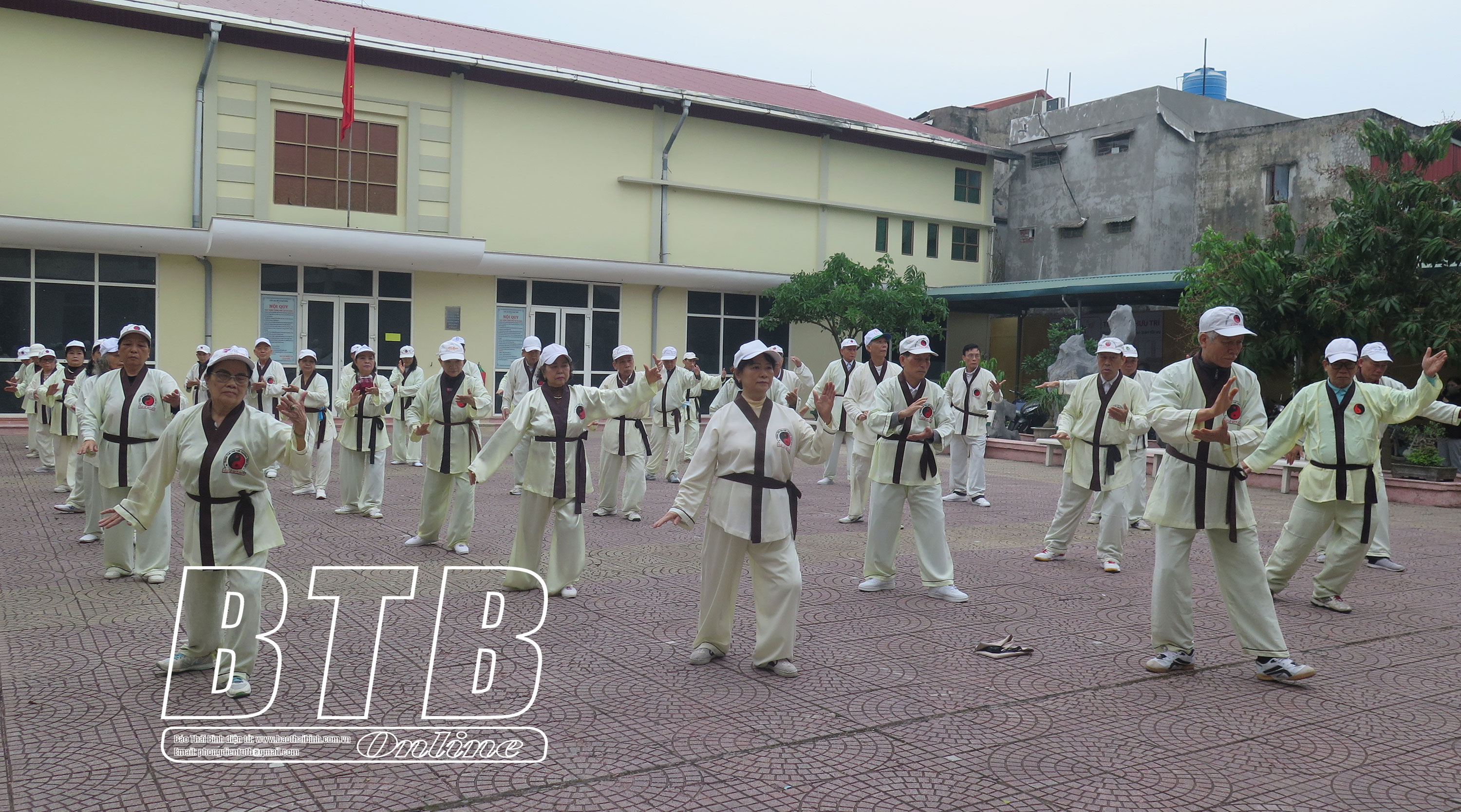 Hội viên Câu lạc bộ Lê Quý Đôn tập thể dục dưỡng sinh.