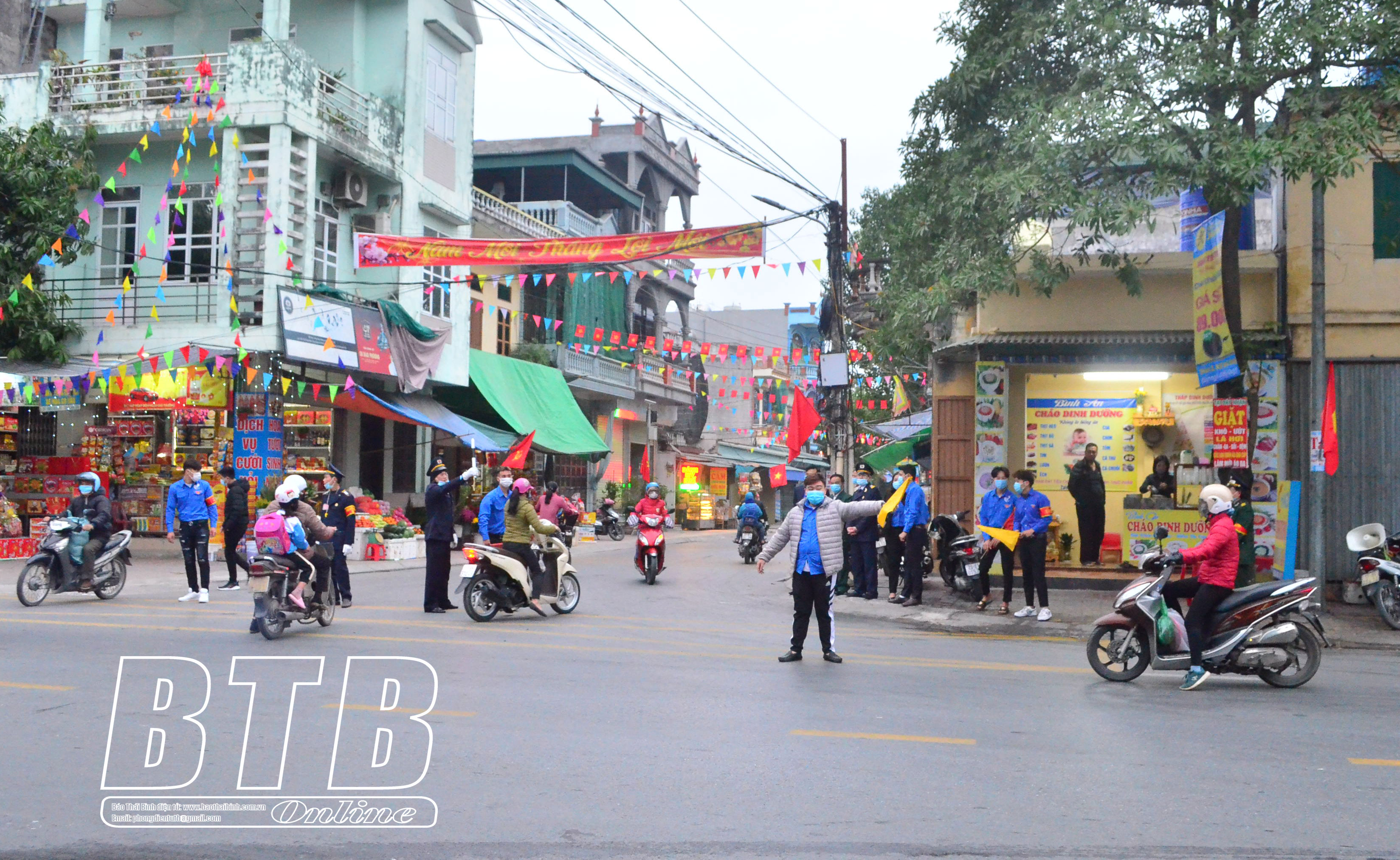 Đoàn Thanh niên và Hội Cựu chiến binh xã Vũ Quý (Kiến Xương) phân luồng giao thông.