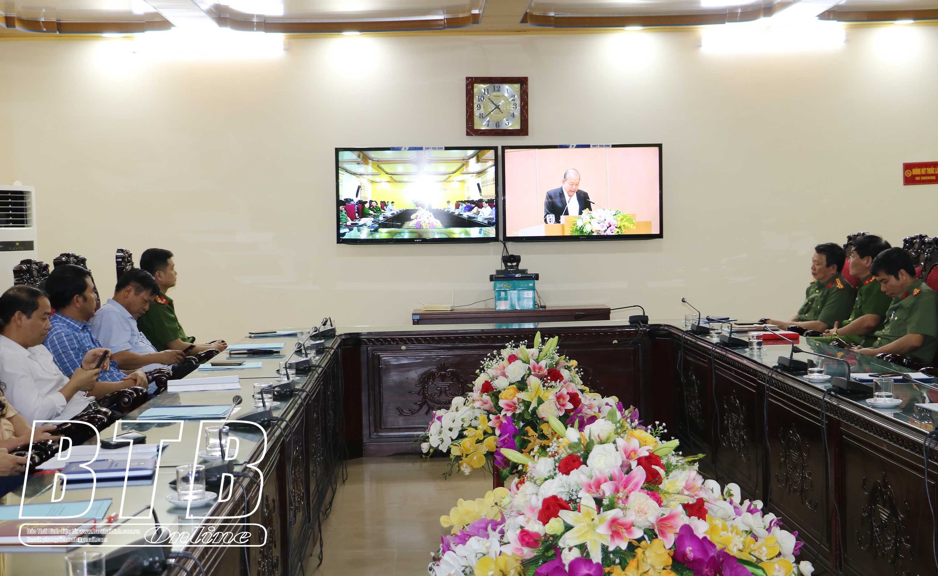 Đồng chí Trương Hòa Bình, Phó Thủ tướng thường trực Chính phủ, Trưởng ban Chỉ đạo 896 chủ trì hội nghị. Đồng chí Lại Văn Hoàn, Tỉnh ủy viên, Phó Chủ tịch UBND tỉnh dự hội nghị tại điểm cầu tỉnh Thái Bình.