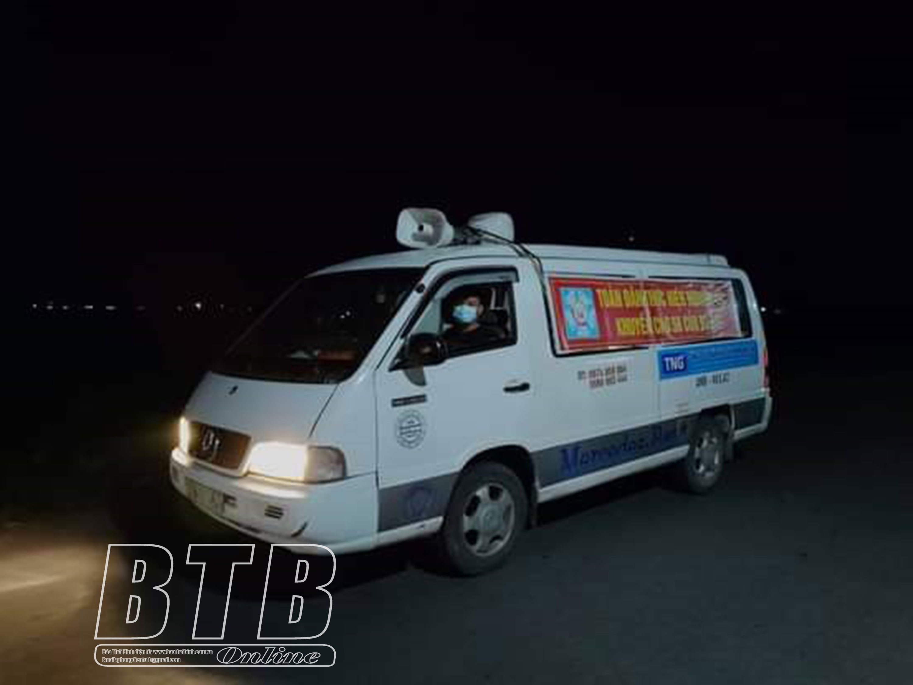 Xe tuyên truyền lưu động phòng, chống dịch của xã Đông La hoạt động cả buổi tối.