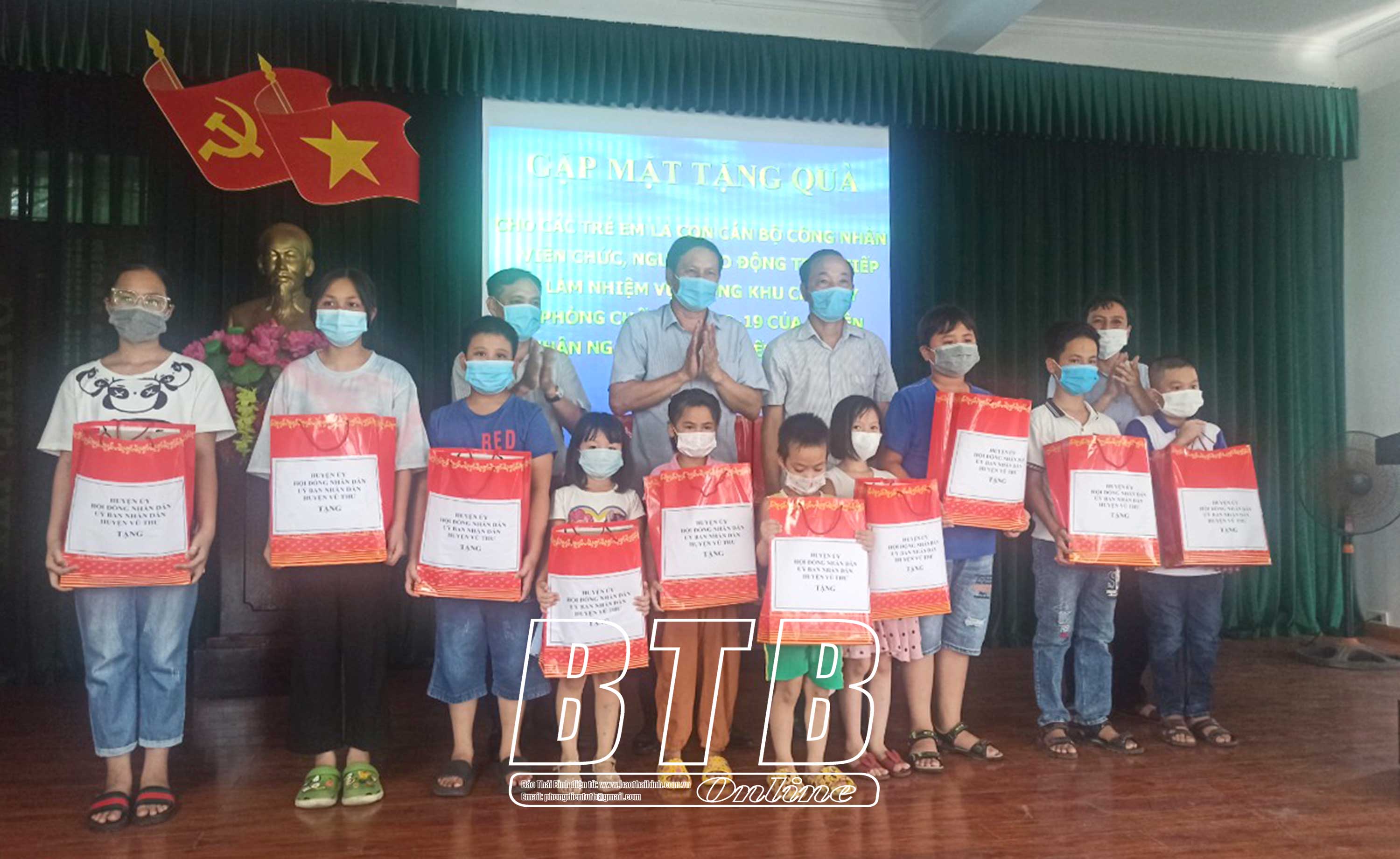 40 suất quà, mỗi suất trị giá 400 nghìn đồng trích từ Quỹ bảo trợ trẻ em huyện đã được trao cho con cán bộ, công nhân viên chức lao động đang trực tiếp làm nhiệm vụ tại khu cách ly tập trung của huyện và trẻ em có hoàn cảnh khó khăn tại các xã, thị trấn trên địa bàn huyện.