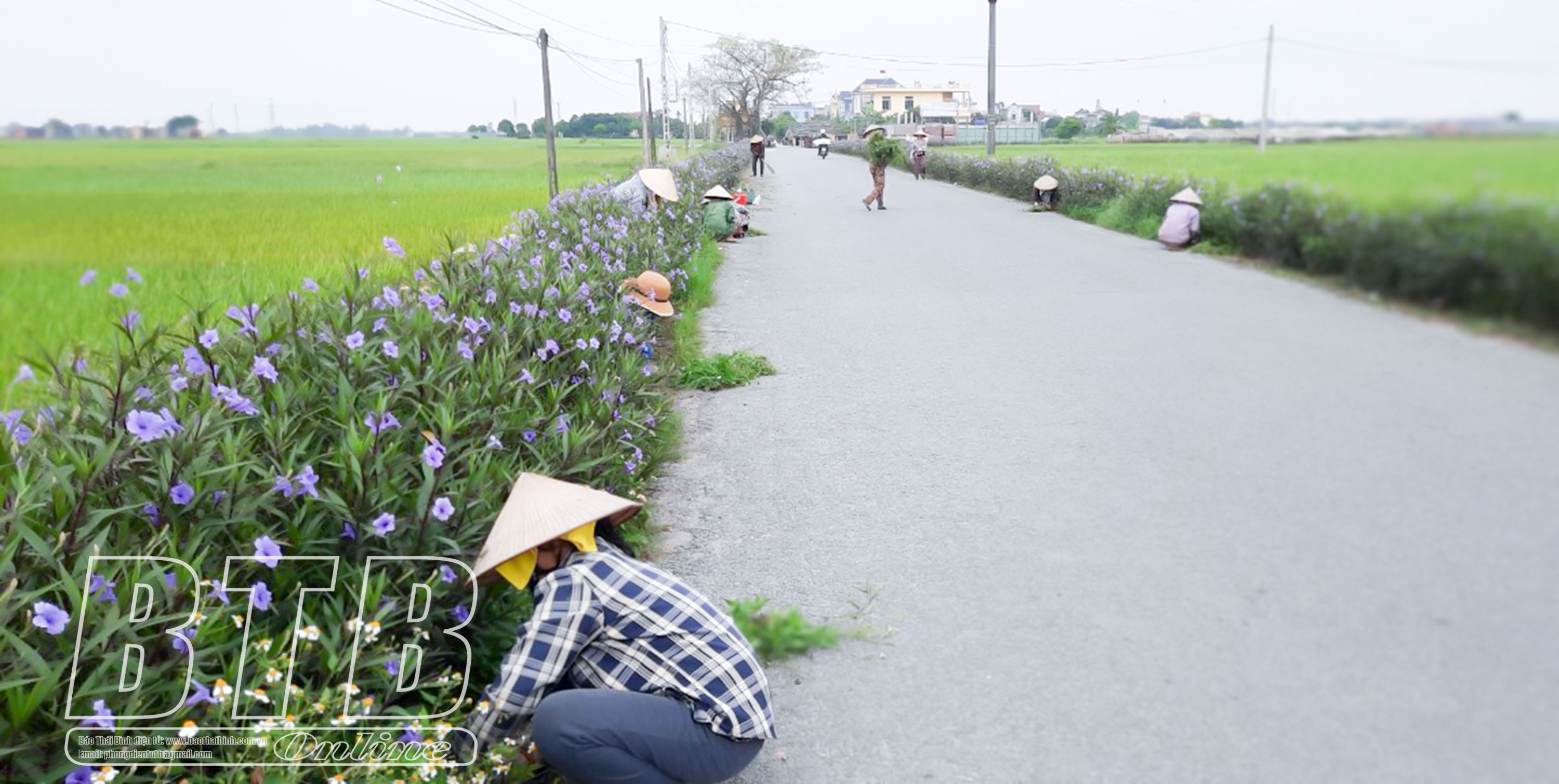 Cán bộ, hội viên, phụ nữ xã Đông Động (Đông Hưng) chăm sóc đường hoa.