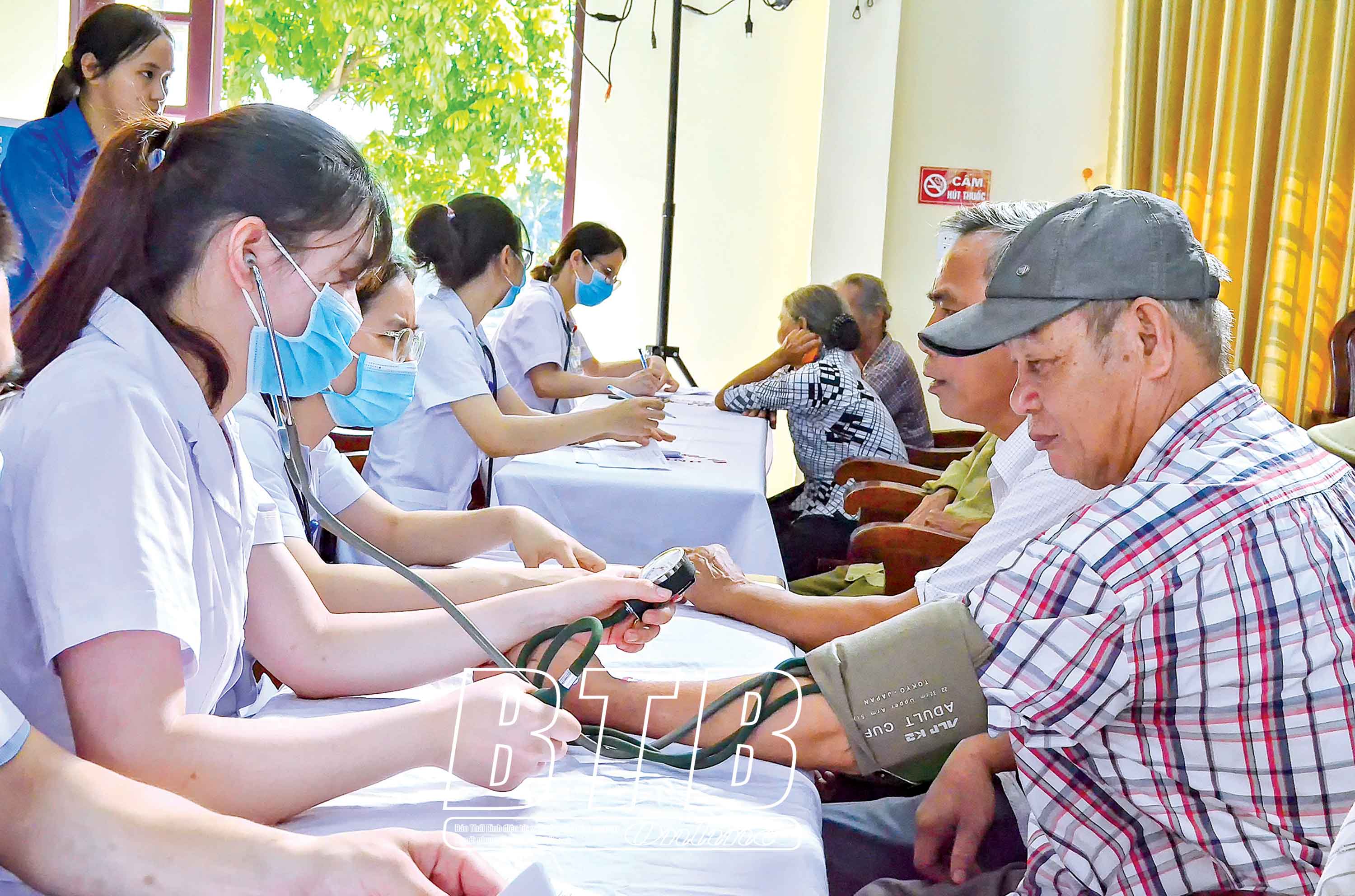 Bác sĩ Bệnh viện Đa khoa tỉnh khám bệnh cho các đối tượng chính sách xã Thái Thịnh (Thái Thụy). Ảnh tư liệu
