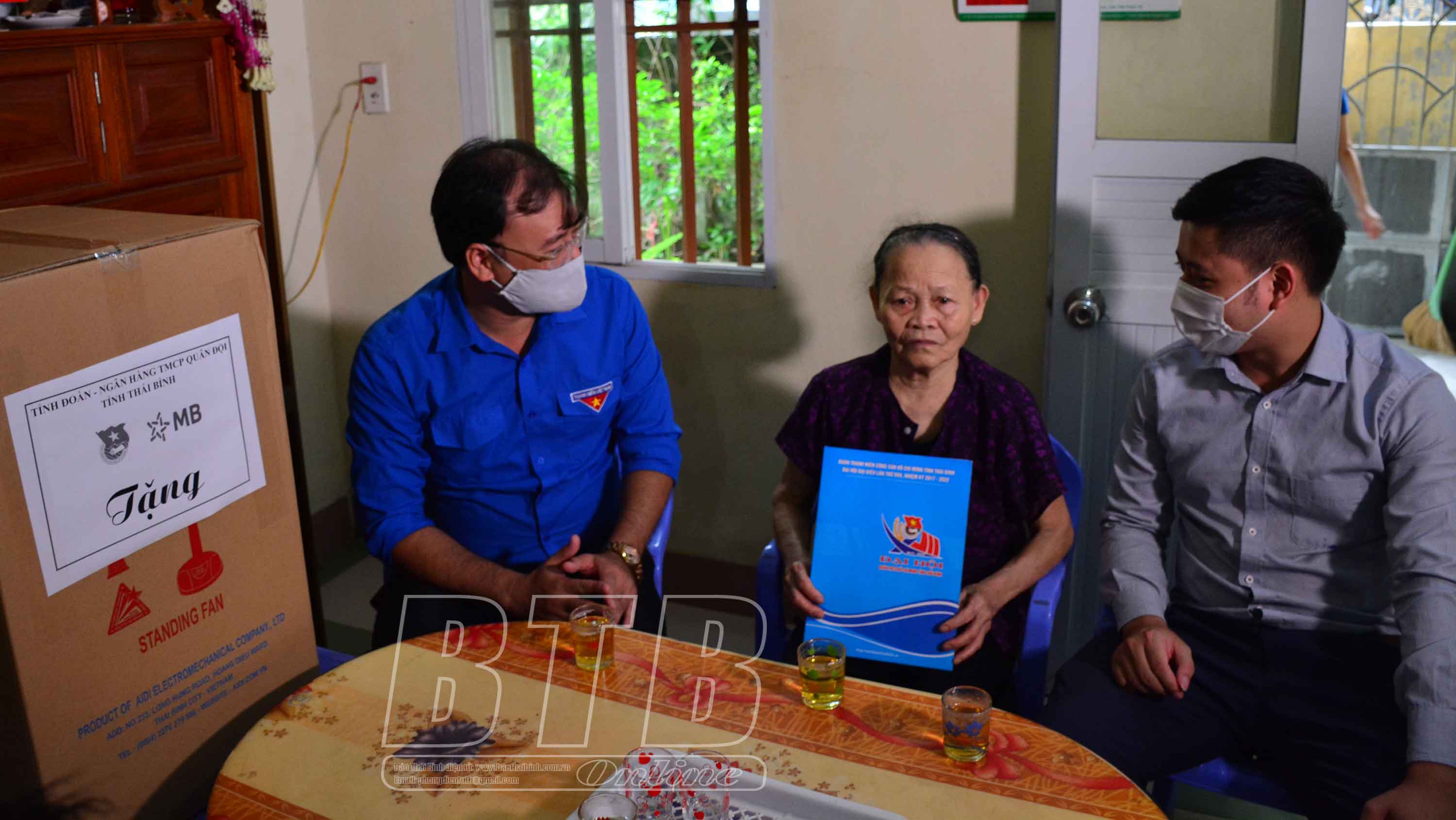 Lãnh đạo Tỉnh đoàn và đại diện Ngân hàng TMCP Quân đội chi nhánh Thái Bình thăm, tặng quà bà Nguyễn Thị Hợi, vợ liệt sĩ ở xã Phú Xuân, thành phố Thái Bình.