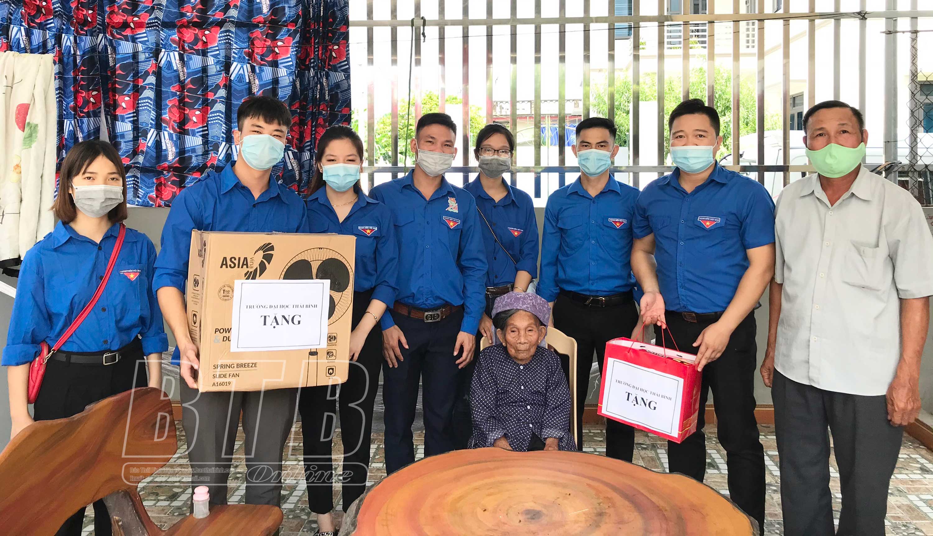 Đoàn Thanh niên Trường Đại học Thái Bình trao quà tri ân cụ Nguyễn Thị Lan (102 tuổi), mẹ liệt sĩ, thôn Trường Mại, xã Tân Bình (thành phố Thái Bình).