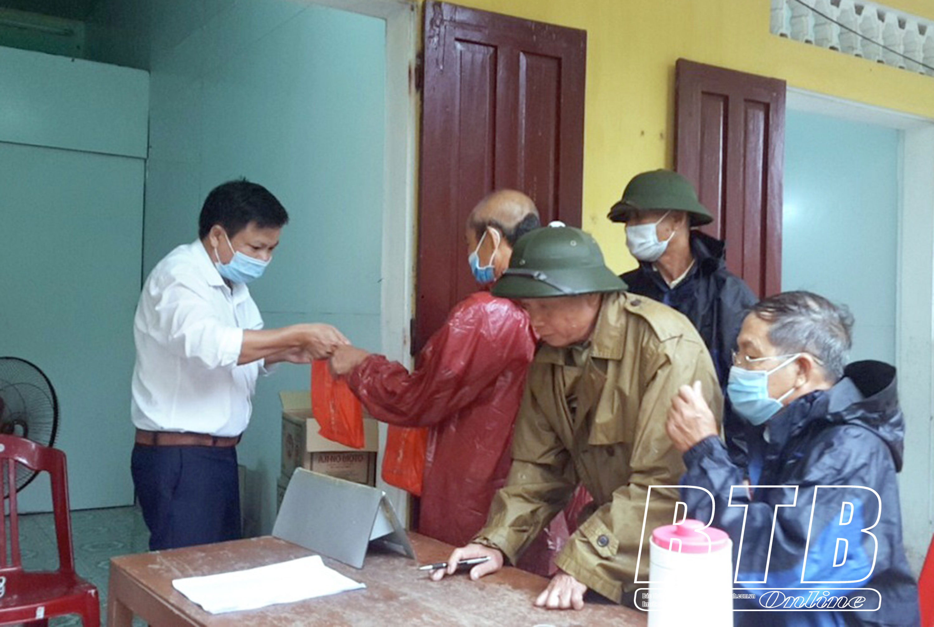 Công an huyện Đông Hưng trao quà cho các đối tượng chính sách tại xã Đông Động. CTV: Tô Phượng