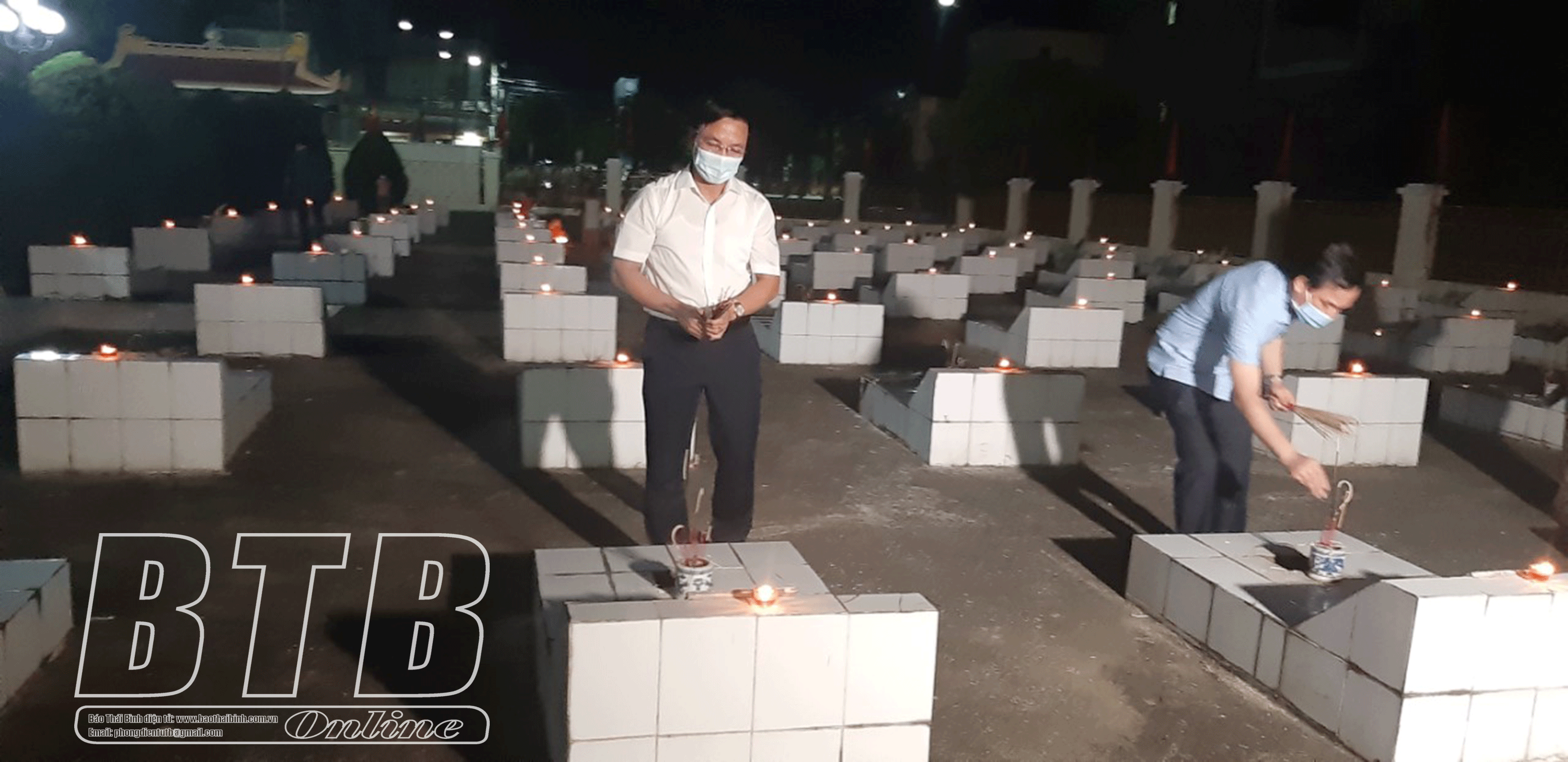 Huyện Kiến Xương tổ chức lễ thắp nến tri ân các anh hùng liệt sĩ tại Nghĩa trang Liệt sĩ cụm xã Hồng Thái. Ảnh: Thu Thuỷ
