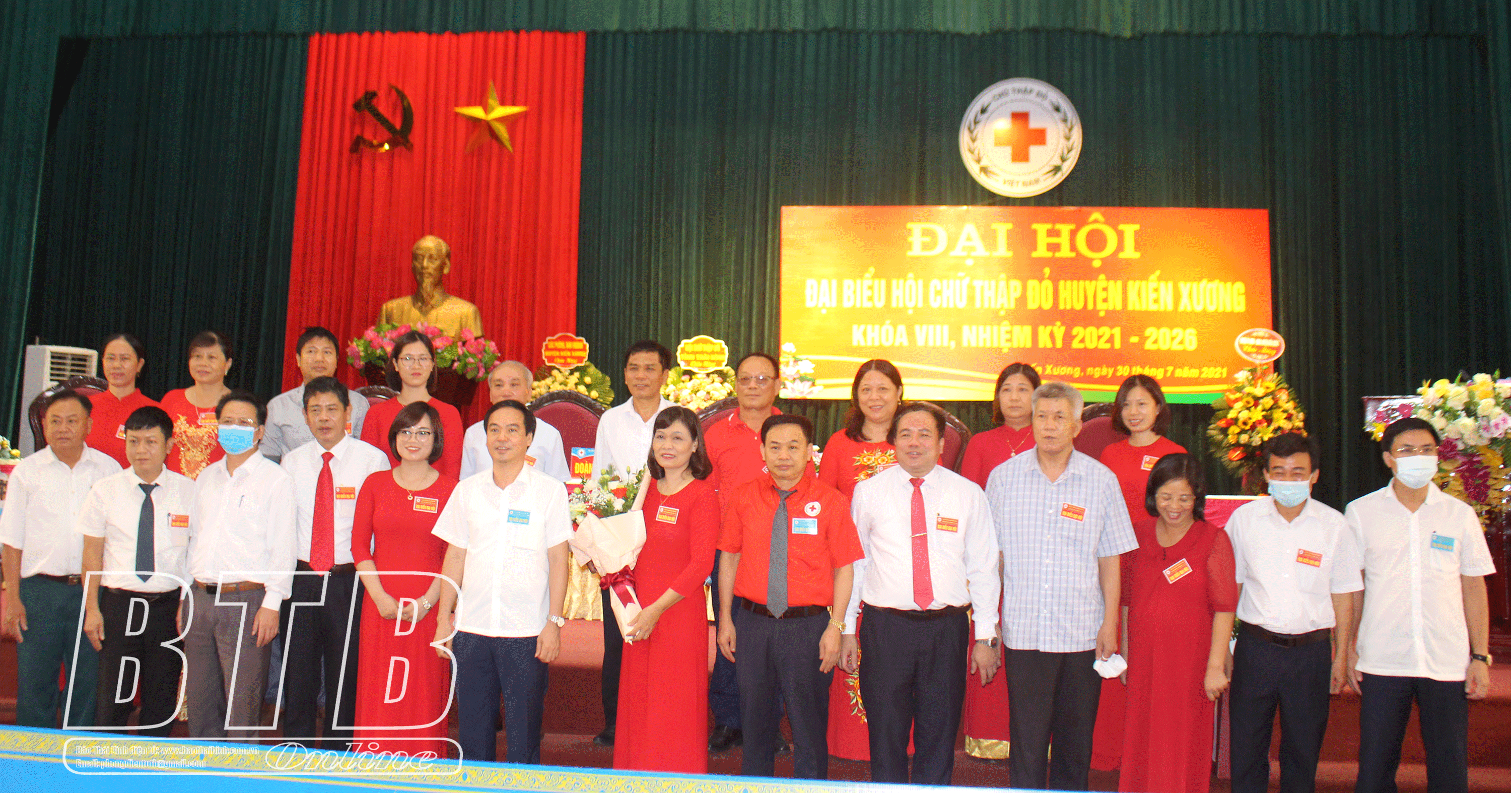 Lãnh đạo huyện Kiến Xương tặng hoa chúc mừng Ban Chấp hành Hội CTĐ huyện nhiệm kỳ 2021 – 2026.